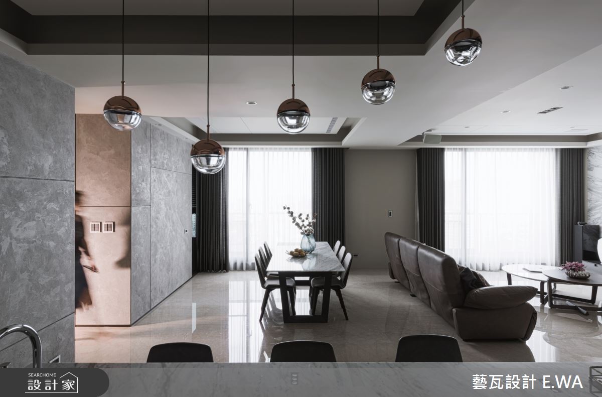 Home Data95 坪大宅,因男主人喜愛溫馨的米色調,女主人喜歡沉穩的深色調,於是設計師整合二人需求,打造出讓兩人都滿意的現代風格,再搭配開放格局、長形吧檯規劃,使居家視野充分延展開來,讓大宅空間感更加乘,快跟著小編一起來看看吧!