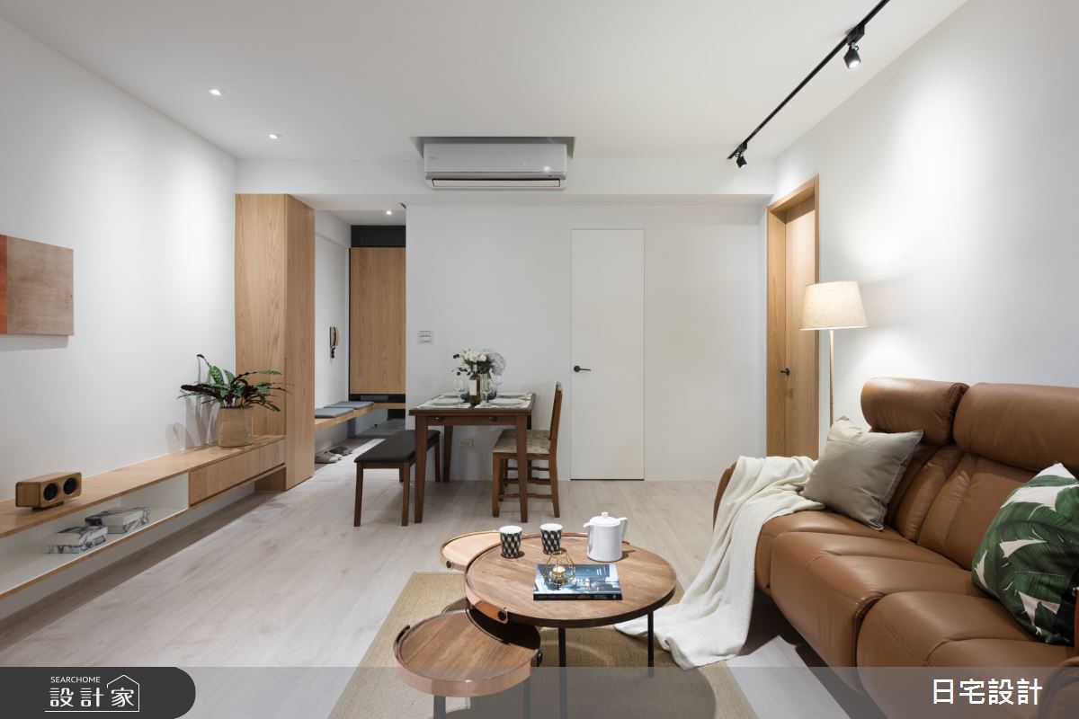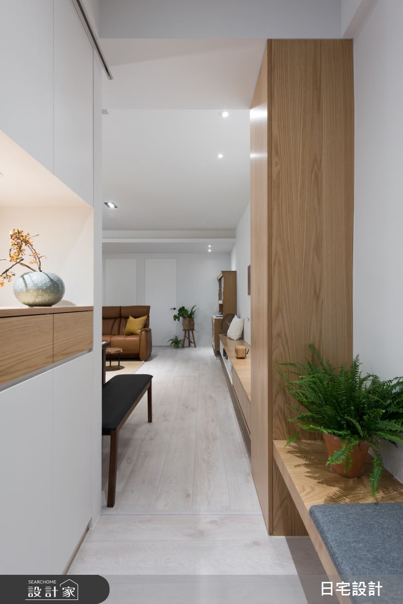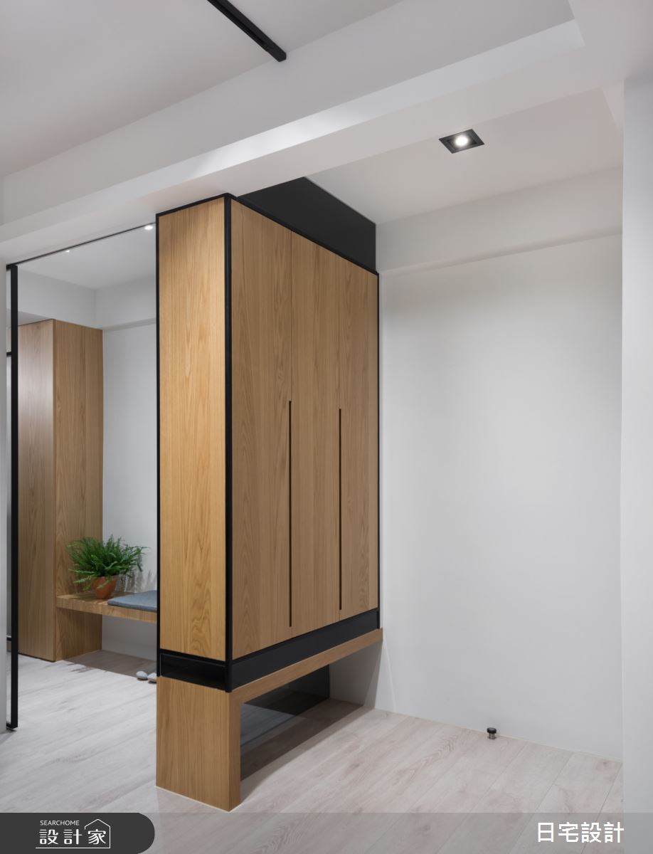 玄關處以少見的兩進式設計,保留出獨立的佛堂場域,給予使用者寧靜氣氛,也有效減少殘香氣味飄進室內生活領域。重新配置的生活空間中,以化繁為簡作為設計主軸,視覺呈現上,以木與白的清爽北歐配色,給愛旅遊的屋主製造休閒放鬆的日常生活感;空間上也依據一家大小的生活習慣,將公共空間整合為開放式共享領域,簡約的用餐空間搭配寬敞的客廳區,增添家人生活互動並拉近距離;而收納設計上也別具巧思,由玄關鞋櫃區一路延伸櫃體,串起流暢且大方的視覺感,同時帶來大容量收納空間。