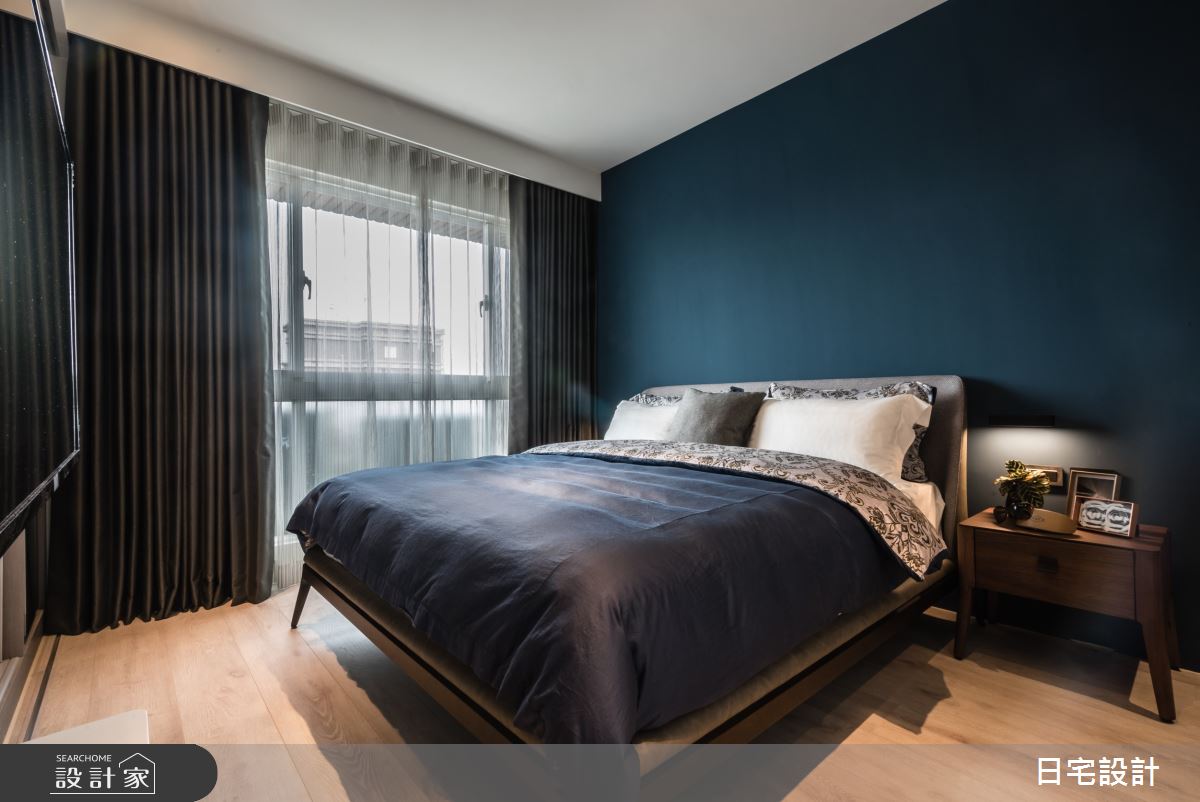 為了滿足愛下廚的屋主,設計師將大餐桌結合吧檯的開放式餐廚,定義為空間動線的中心點,向外擴展出公私領域,讓屋主可以在此處邊煮菜邊跟親友聊天,平時也能夠在這邊使用電腦、處理公事,形成複合式的機能區域。客廳以深綠色電視牆搭配深藍色軟件,在灰色系的居家主視覺中,增添了和諧的自然氣息。