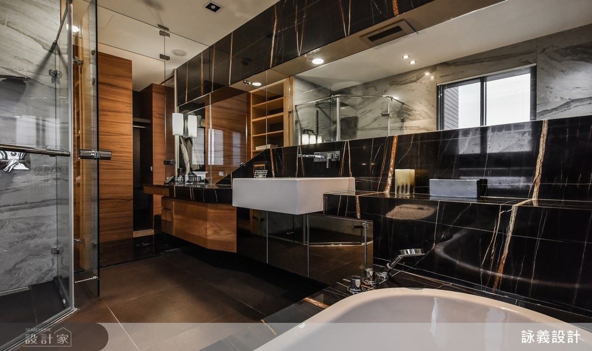 主臥坪數極大,將屋主希望的品味、機能與起居融合為一,不但保留優裕舒適的空間感,更配置實用的更衣室與洋溢奢華質感的主衛浴,極盡所能的成就輕鬆自在的生活享受。室內牆面藉由垂直與水平不同的語彙交織,呼應公領域設計感;主衛以黑色帶金紋的石材作主調,彷彿氣質高貴冷豔的美女,令人驚嘆。