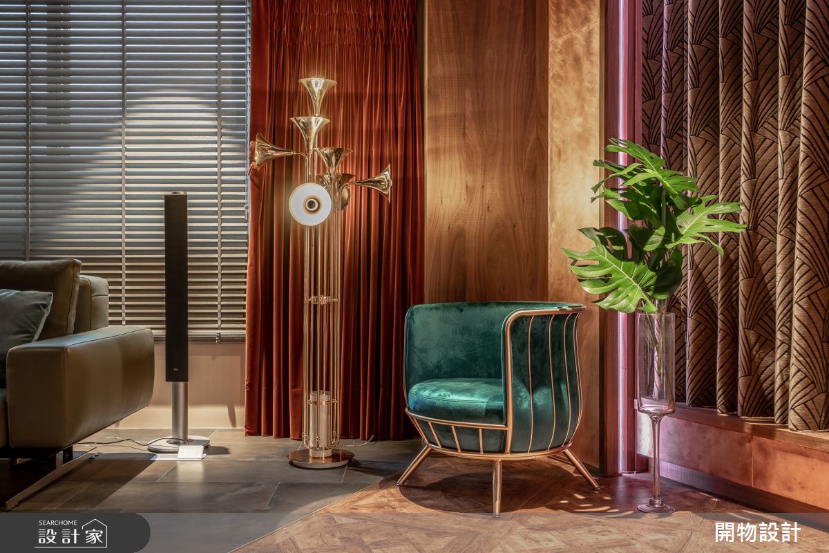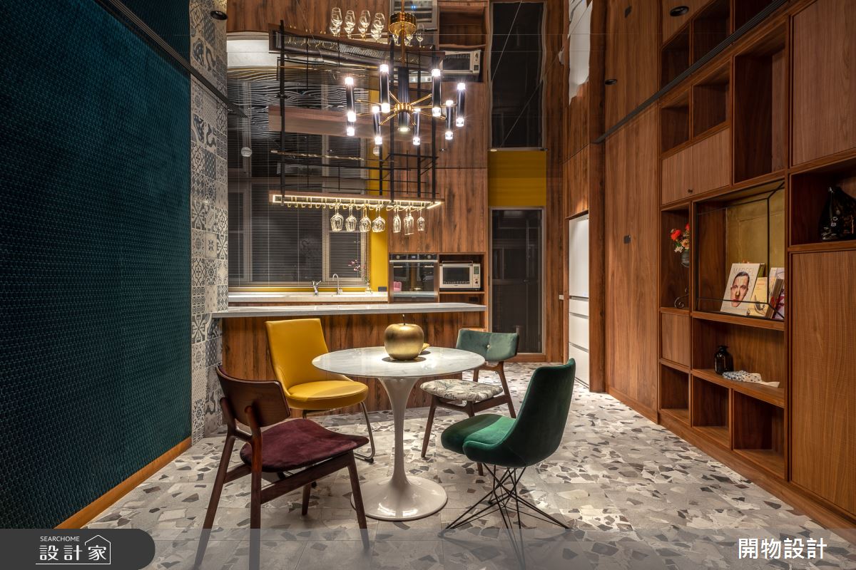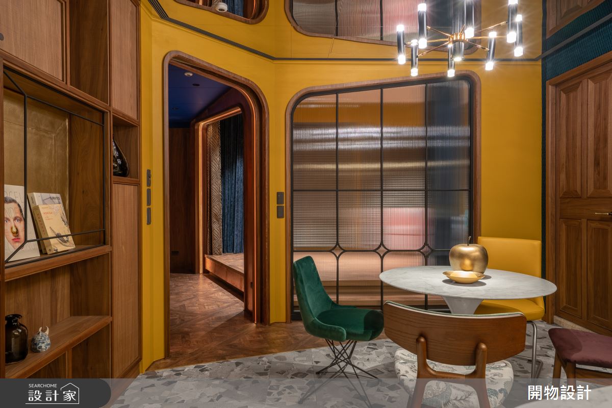 Home Data如何讓住宅跳脫制式想像,並貼近居住者的內在樣貌呢?45坪單層宅邸,開物設計運用強烈的撞色搭配,營造戲劇張力,藉由酒紅、鈷藍、銘黃、湖水綠、橄欖綠等色調,再加上紅銅、胡桃木等質材安排下,傳遞有如中世紀歌劇院般的古典風格,混搭出摩登非凡的視覺饗宴。