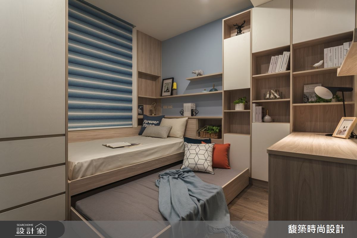 為滿足四個人的收納需求,多處運用隱藏式設計,如餐廳區的木格柵隱藏式收納、臥榻下方的收納櫃等,皆保留視覺的寬敞下,盡可能增添儲物空間。臥房除了注重收納規劃外,還選擇運用可收折床鋪,替小’空間找到更多的使用可能。