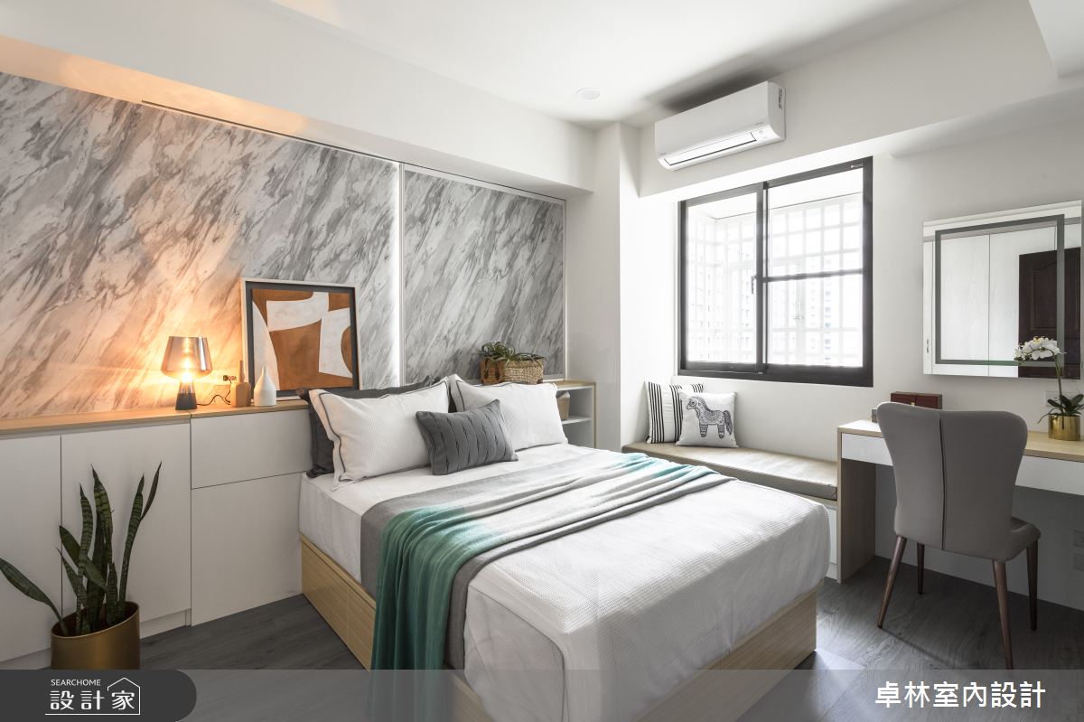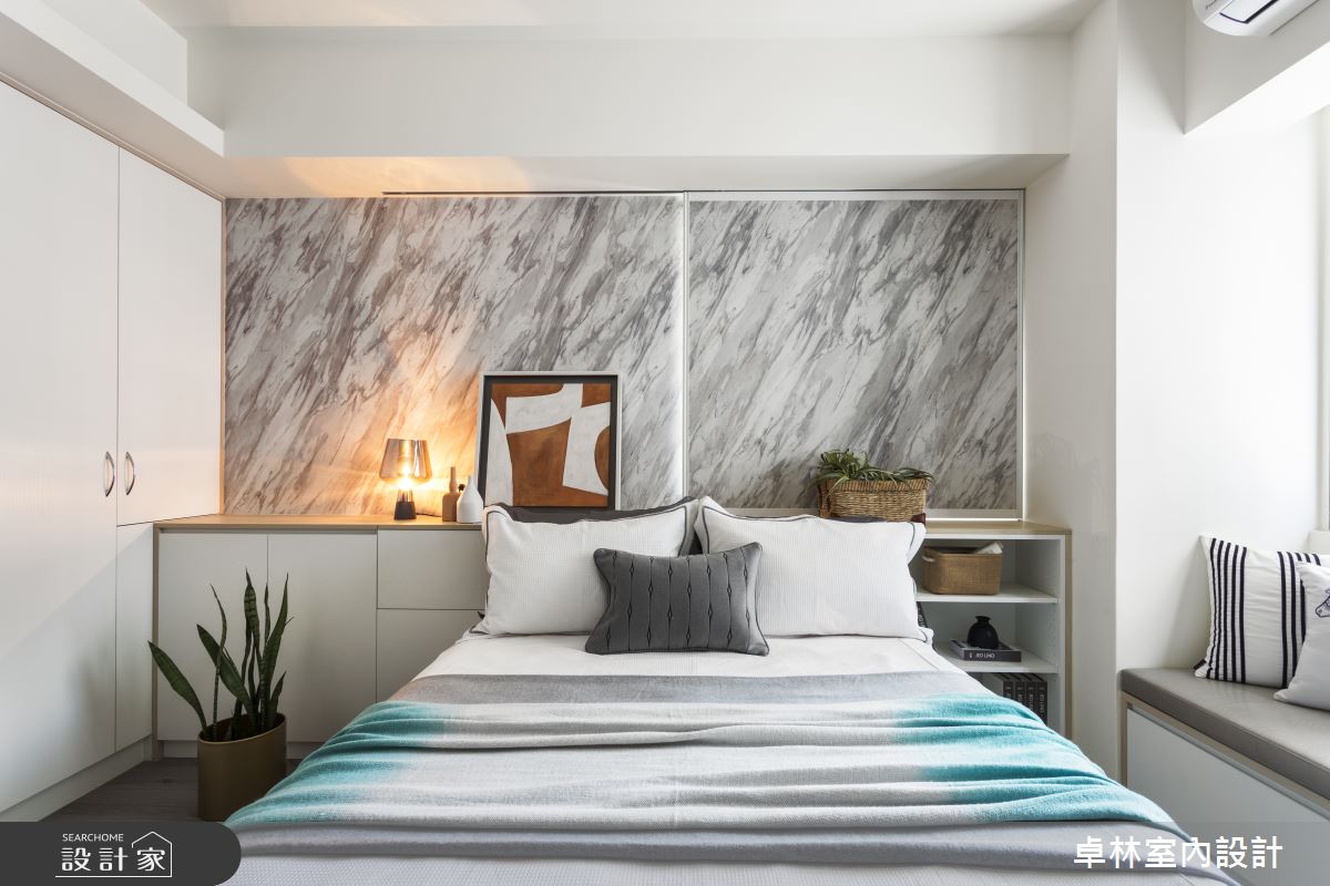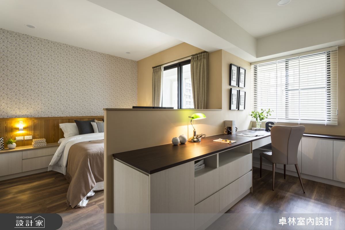 主臥內,透過中低矮牆為屏,刻畫靜謐而獨有的書房角落,既可專心投入當下,亦保持與家人間的交流,賦予彈性而多元的生活機能。