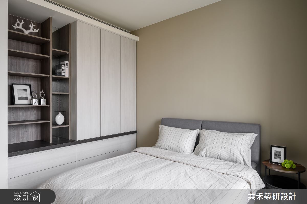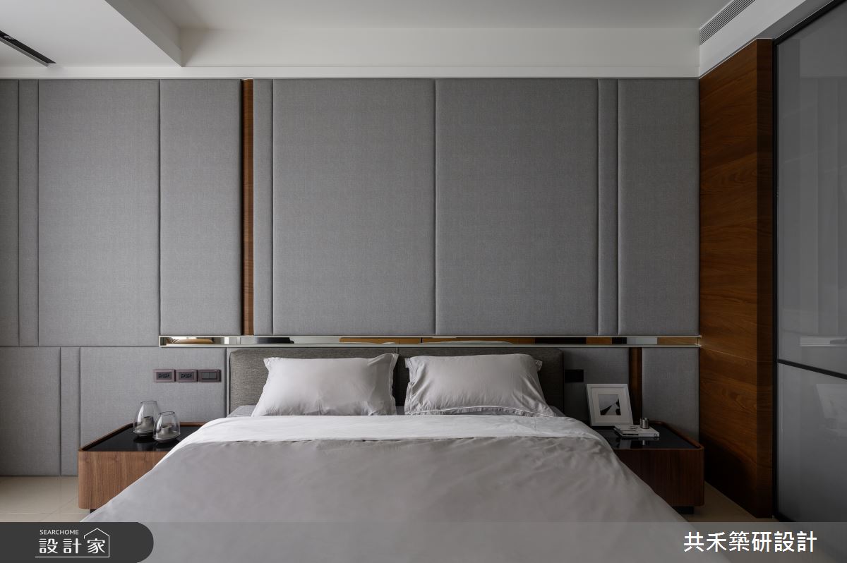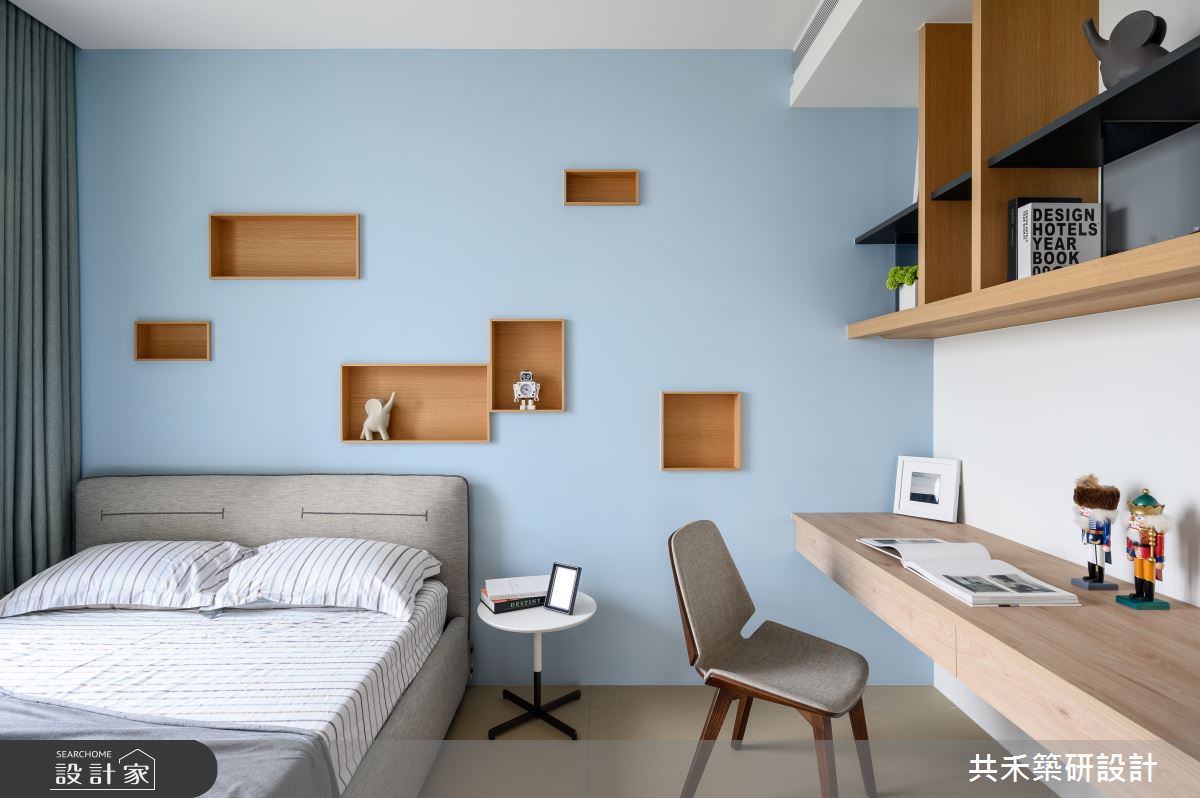 走入私領域,主臥床頭拿捏精準比例,拼接裱布、玻璃和木質等材質,營造品味獨具的質感雅臥;專屬小男孩的次臥,則以不規則的縷空和淺藍色,營造活潑的空間氛圍。