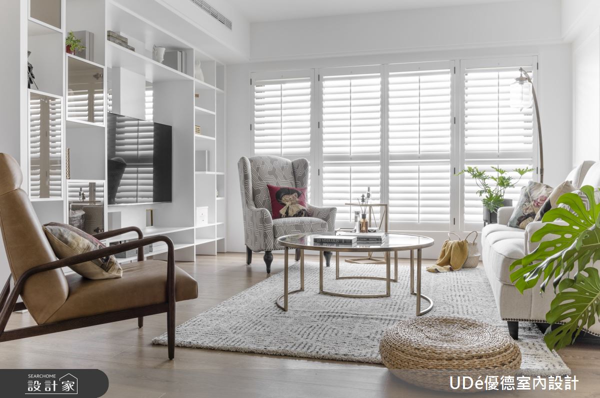 35 坪白系質感「輕美式風」,白線板 + 白百葉窗打造完美光感宅