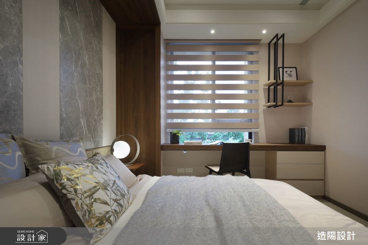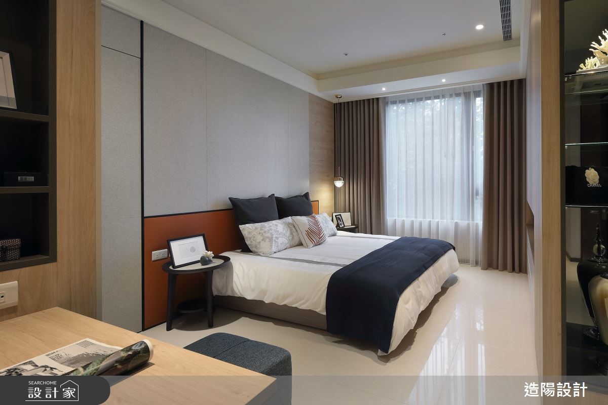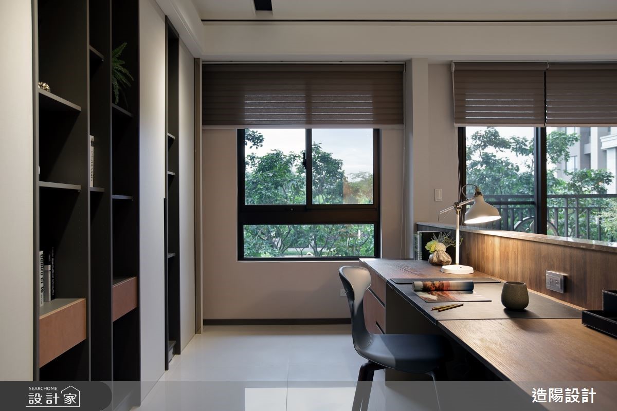 四間臥室分別以不同的需求,完成其中的機能設計及空間規劃。孝親房特別將書桌規劃在窗邊,讓丈母娘在研究書籍與論文的同時,可以享受窗外美景與採光。孩子房中隨手可得書櫃設計,讓人不管在床上、桌上、地上都可沉浸在閱讀的快樂。另外,在客廳規劃開放式的空間串聯著書房,同時可以看電腦與看電視,因應男主人看股票的習慣。
