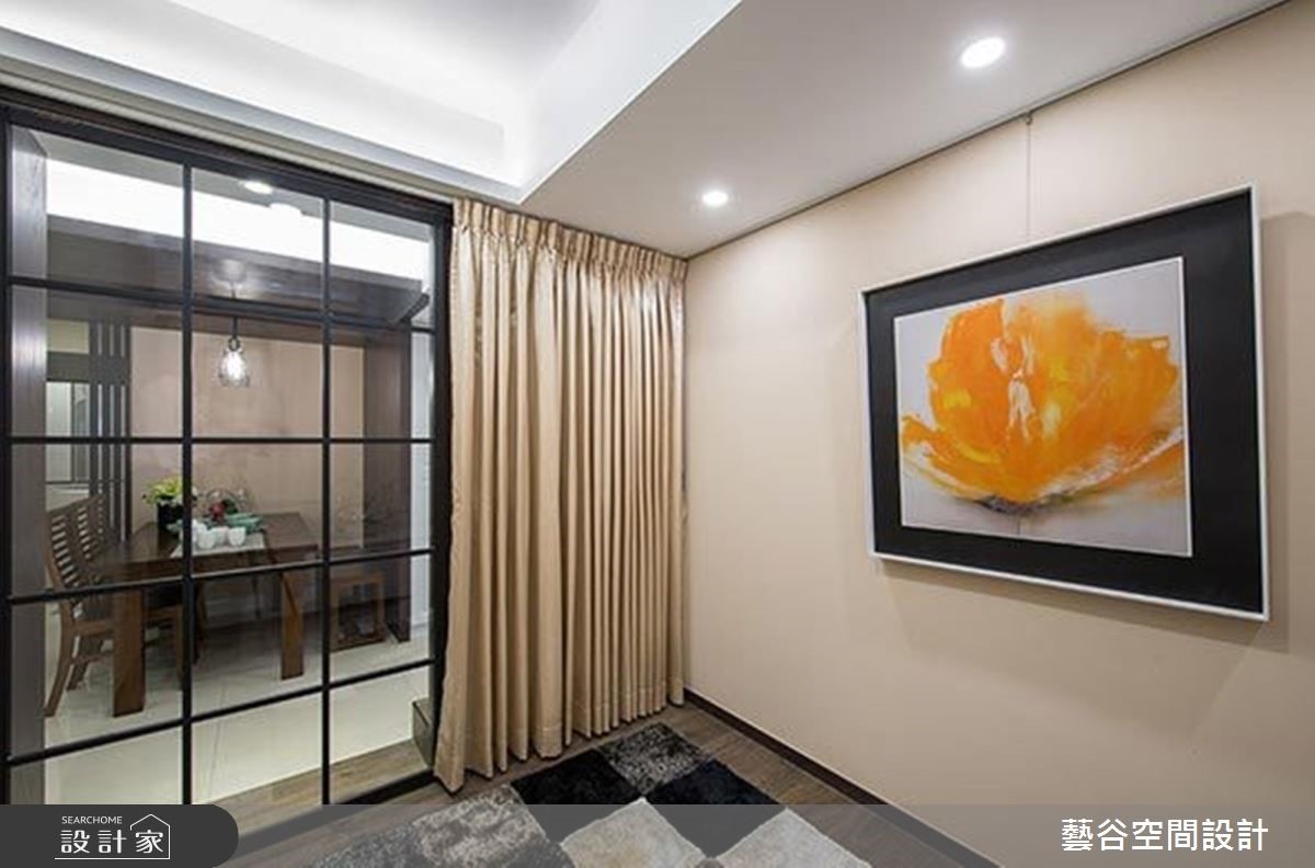 寬敞的公領域以輕淺色系為底,串連同色系的異質材,建立明快清爽的第一印象,電視主牆採白文化石鋪陳,手感紋理為空間挹注暖度,接著向外延伸出臨窗吧台,巧用玻璃門片確立分界,維繫視線流通,又刻畫享受陽光、視野的美好天地。餐廳區域,轉以深系木質鋪陳,打造沈穩安定的視覺感受,並透過長型溝槽的天花設計拓寬空間尺度。與餐廳為鄰是多功能和室,以藝術掛畫奠定人文質感,並藉由玻璃門片和窗簾作用下,同時保有開放性及隱密性,彈性創造空間的多樣面貌和機能。