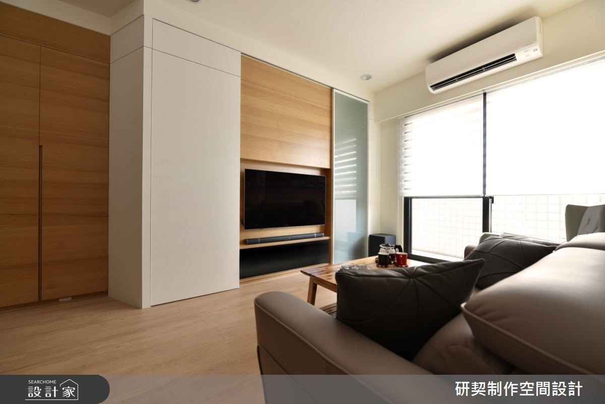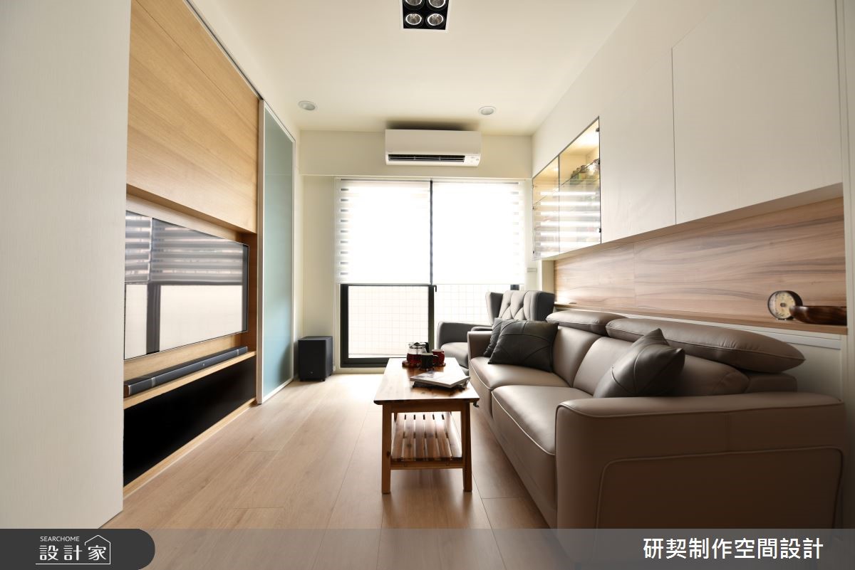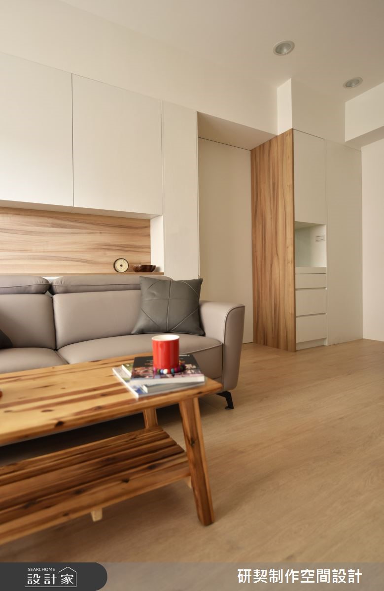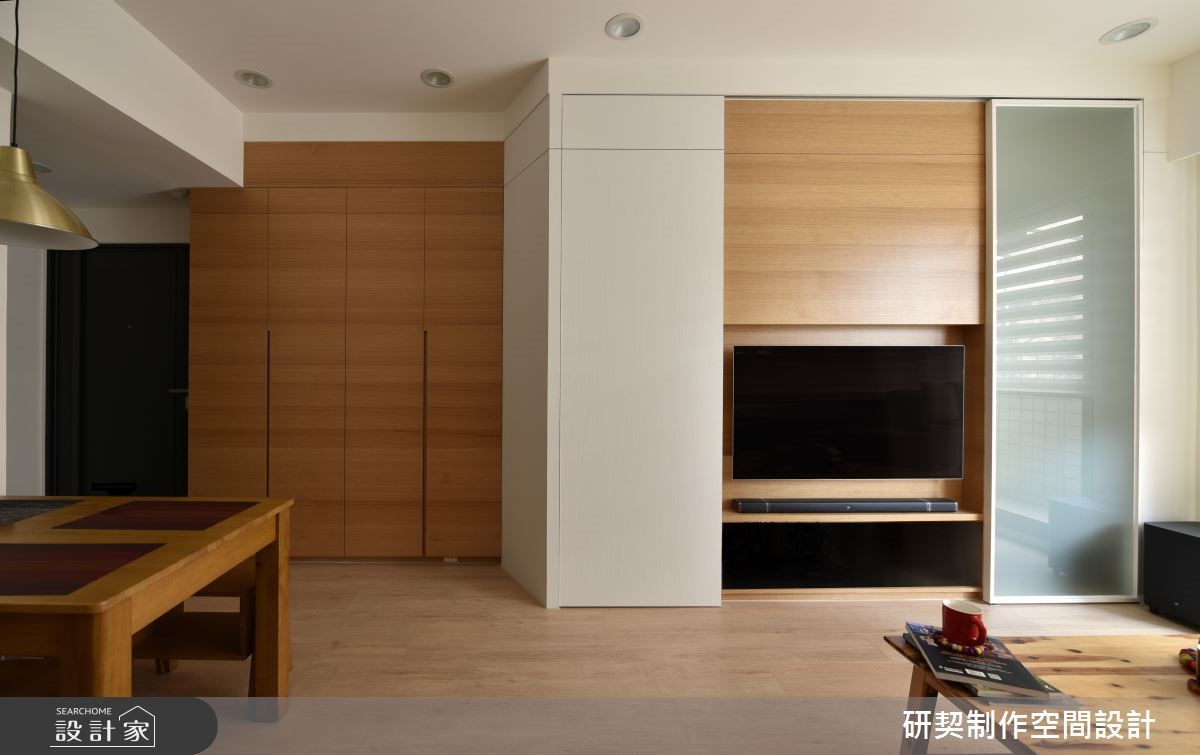 Home Data23 坪老屋,設計師將屋主的生活哲學:「恬淡慢活,日日敬好」轉化為設計語彙,發揮北歐風的極簡、無印風的自然,在純白基底注入溫潤木質材,將其改造為休閒自適的生活場景。