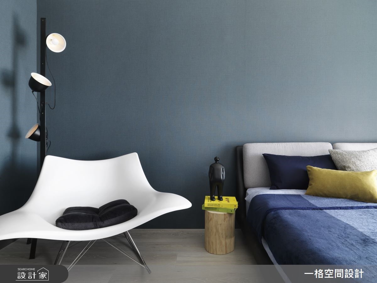 主臥牆面採莫迪蘭色鋪陳,輔以活潑鮮明的寢飾、線條簡約的單椅,在沈穩靜謐的休憩空間中,抹上一筆獨特的個性色彩!