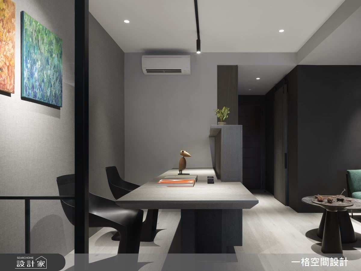 甫入玄關,一體成型地整合鞋櫃、電視牆、書桌、餐桌,賦予充沛的居家機能,運用簡潔流暢的設計手法,界定客廳和書房場域,更保留舒適的空間視野。考量生活動線,劃分三個獨立的長型格局,選擇玻璃隔間為屏,將自然光源引入公領域,烘托室內的溫暖樣貌。配色則以灰階為主調,在光影流動下,突顯亮眼掛畫和孔雀綠沙發,描繪細膩迷人的居家質感。