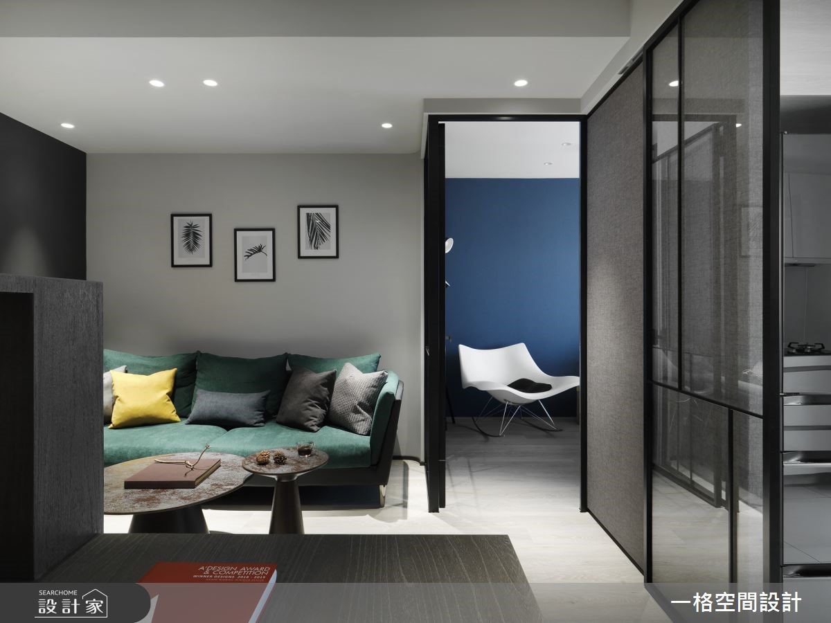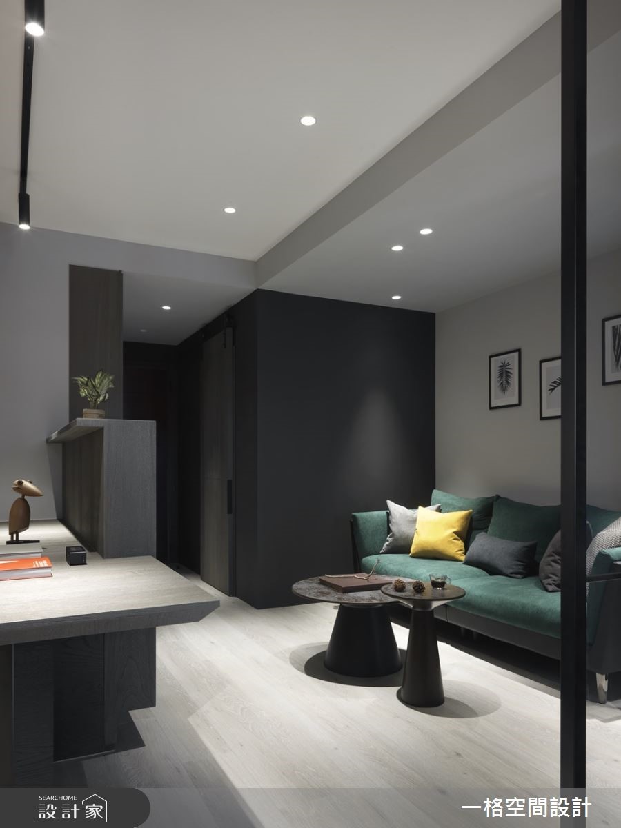 Home Data15坪單層公寓,由於方正格局、單面採光導致室內昏暗,因此設計師注入低彩度色系,巧用玻璃隔間,將光線作為主軸,營造寬敞通透感,同時整合居家機能,發揮最大坪效,創造俐落清爽的簡約風居家!