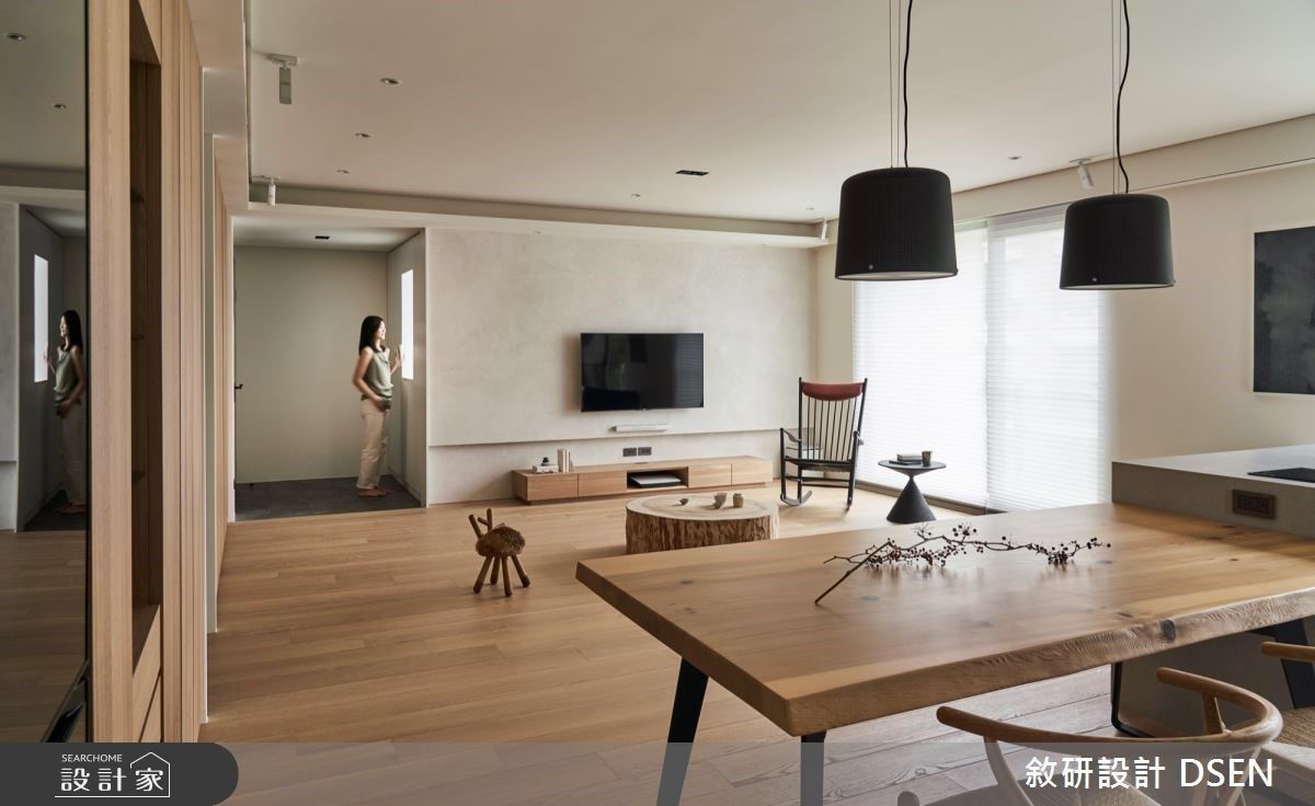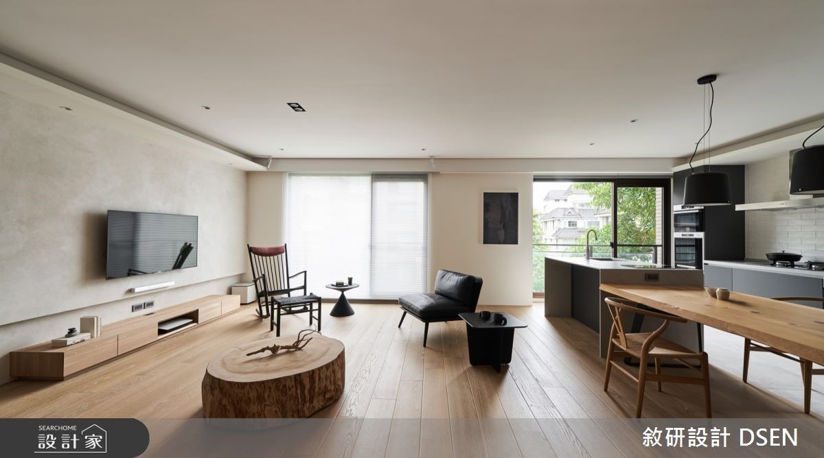 位於內湖近郊的小型社區,為屋齡約 10 年的中古屋,原有格局設計雖已具有現代新成屋的思維,卻仍無法扣合屋主與家人的居住需求。敘研設計大刀闊斧地將室內格局重新配置,讓空間的功能性完美回應生活所需,保留完整的落地窗面,引進日光映照室內純粹的色調,營造舒適無壓的居住空間。