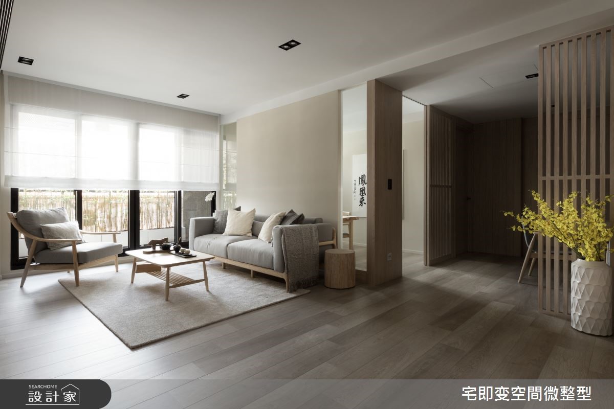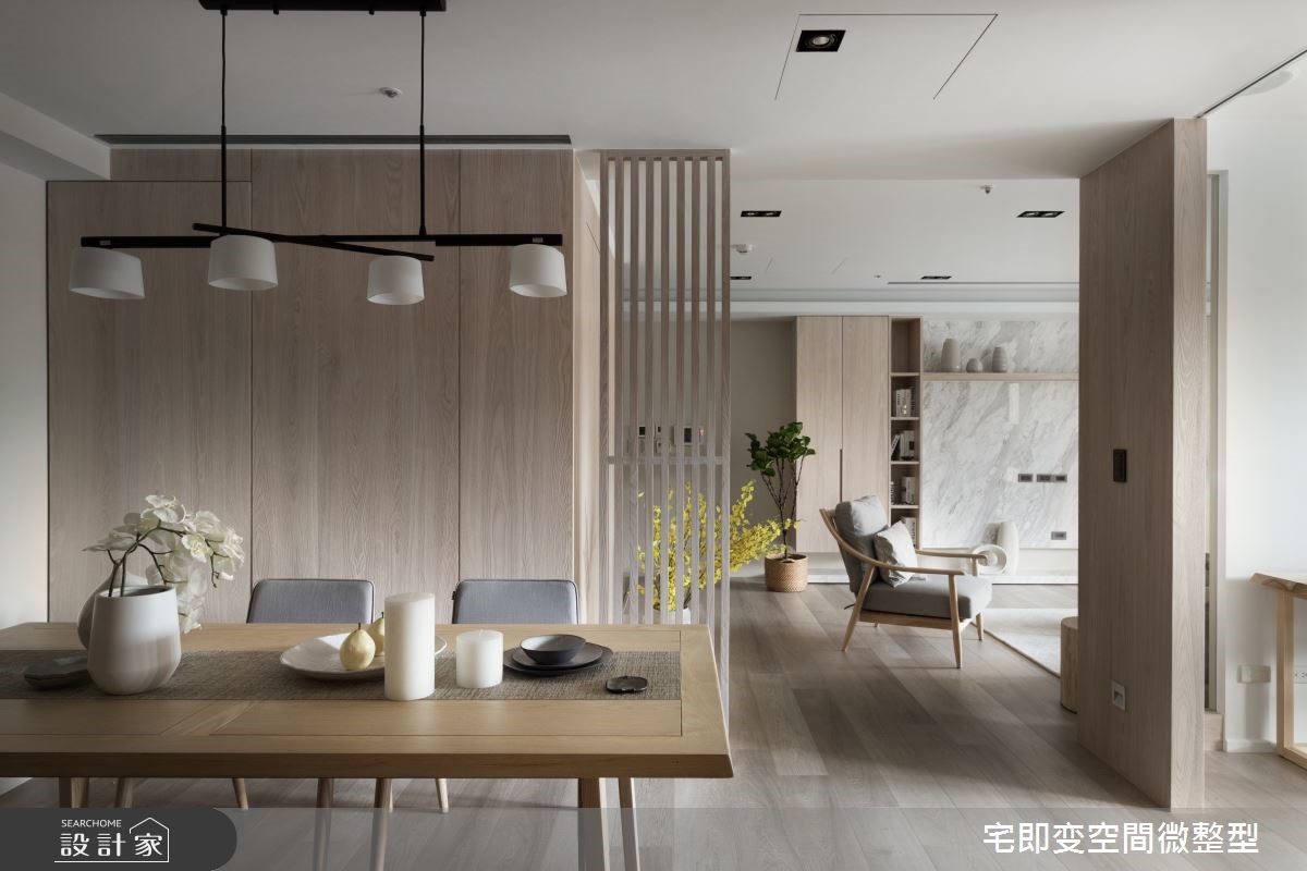 居宅透過大量「留白」,闡述開闊而具呼吸感的空間性,並以玻璃窗引導溫煦陽光,補足空間的動人溫度,同時賦予簡約明亮的色調配置、優良的空間動線規劃,在櫃面、地板等處綴點木質元素,增添無壓生活感;開放式的餐區則規劃餐櫃,以極簡的收納形式,網羅美感與機能,周邊配置造型格柵,讓場域之間可透光通風,使空間劃分得更清晰輕盈;延伸至一旁,可來到多功能書房,以經典語彙表現經典的日式風格,藉由風琴簾讓透入的陽光變得更柔和;臥房內,維持著簡約的木質風格,沉澱著內斂穩妥的禪韻,平實不浮誇,卻更顯溫度!