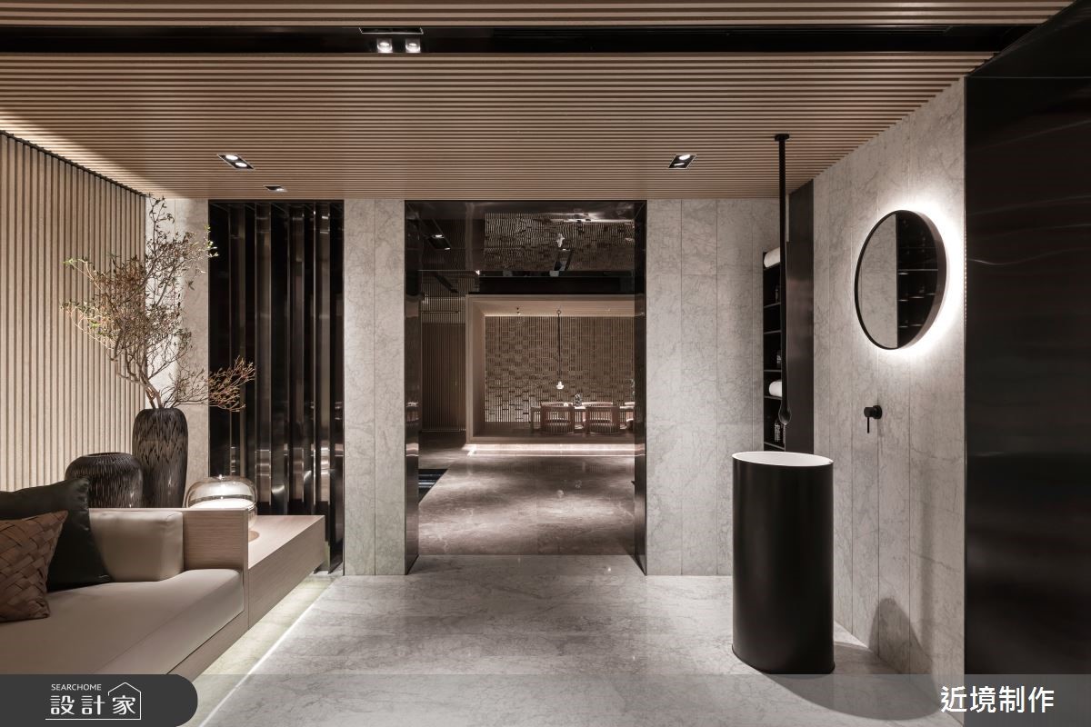 Home Data這間189坪的複層住宅有著同型住宅地下暗淡無光的問題,近境制作透過建築的挑高層分塊,增設夾層空間並向外向上發展,接受自然天光引入室內,並利用夾層作為轉換空間,帶入綠意。