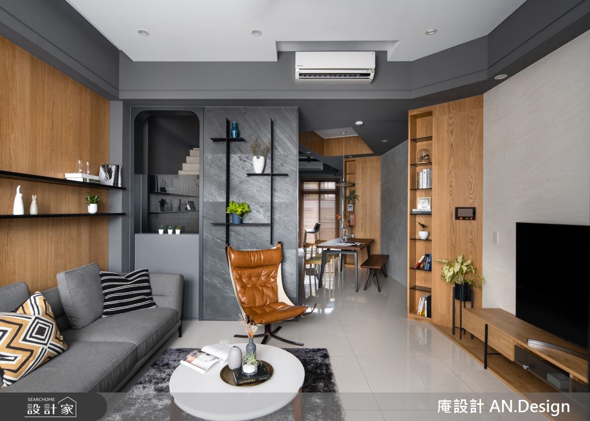 Home Data長型屋容易會有空間陰暗、廊道狹長的問題,而設計師在這間透天別墅中,利用旋轉天花板軸線的巧妙設計,以及牆面位置的調整和挖空,讓客廳變大、動線清楚、收納增加、採光升級,室內每一吋都充滿屋主喜愛的咖啡香氣。