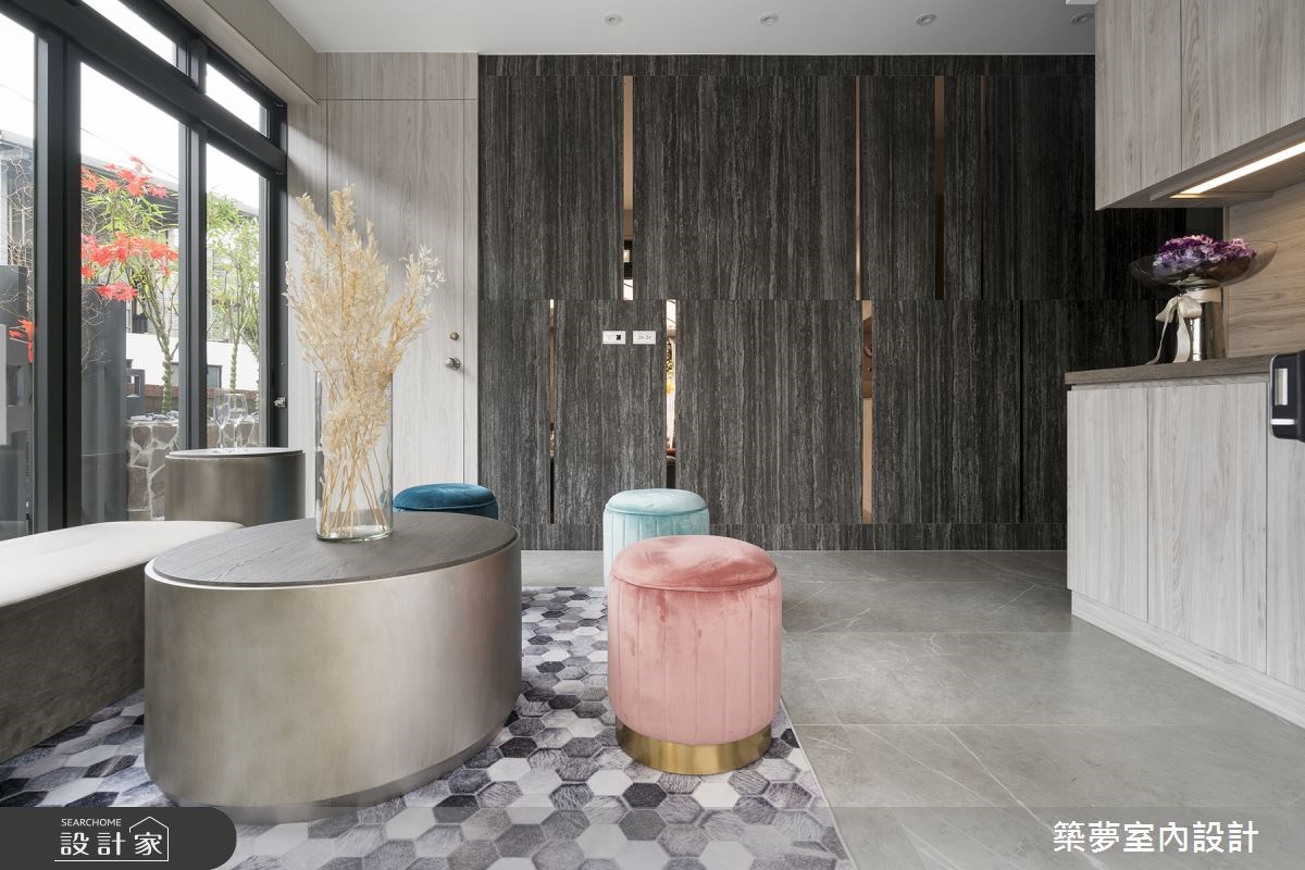 屋齡50年被街坊鄰居十分厭惡嫌棄的老屋,築夢室內設計將其重整賦予新生命,搖身一變為溫暖並兼具飯店質感的優質民宿,請跟著小編一起來看看吧!首先,設計師調整格局,將原本的三房改為四間大套房,並利用設計與隔間賦予空間方正的視覺感受,讓經營民宿的屋主能有最佳的房間數,而原本老屋漏水、壁癌、採光不佳的問題也因此迎刃而解。戶外陽台休憩區採用歐洲浪漫的休閒風格」,有如置身在國外咖啡廳般優雅愜意。而走入玄關迎賓區,深淺木紋壁面中間鑲嵌玫瑰金鍍鈦在自然低調中帶點奢華,馬卡龍跳色的圓形坐墊則巧妙增添活潑氣氛,讓遠道而來的旅人洗滌疲憊的身心,並與來自世界各地的旅客互相交流旅遊趣事。