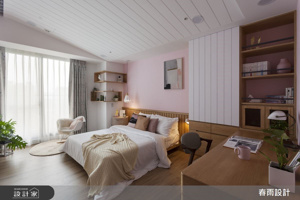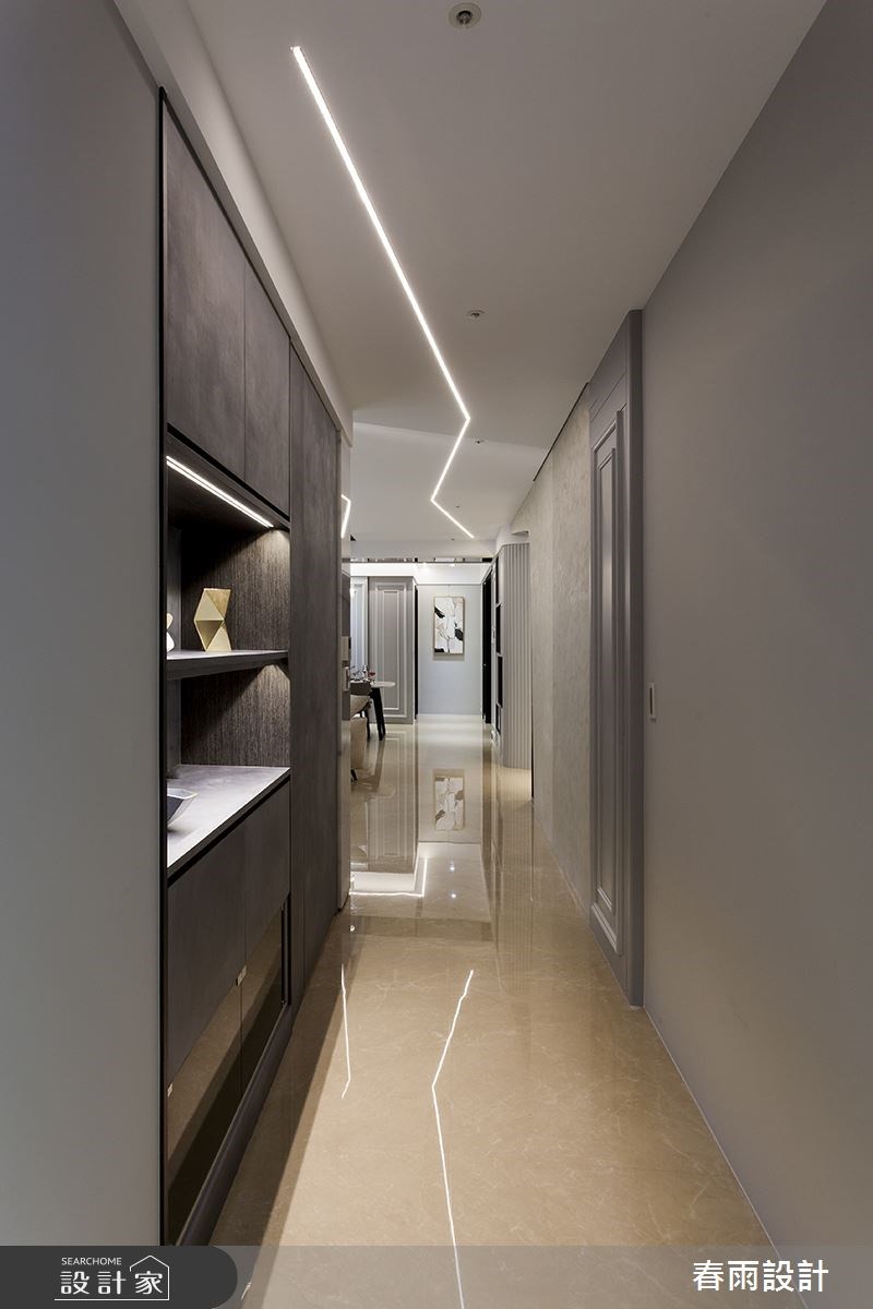 跟隨閃電型的光帶,走入私領域,四間臥室各以不同主色展現個性,同時沿用一貫的線板元素刻畫牆面,創造出和諧卻多變的空間樣貌。