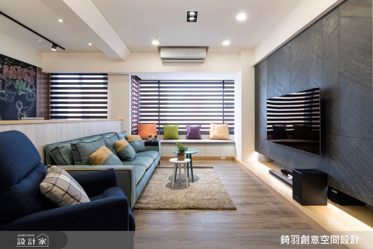 玄關一進來,莫蘭迪色六角磚開啟耳目一新的空間感受;緊接著豁然開朗的公領域中,原本封閉式和室改為開放式書房後,放大了家居視覺,也減少家人間的溝通阻礙。客廳電視牆鋪排薄板岩的大氣質感,藍色系布沙發則調和了軟硬調性,而當親友來訪時,下方藏有收納機能的窗邊臥榻,能立即給予足夠的座位空間。