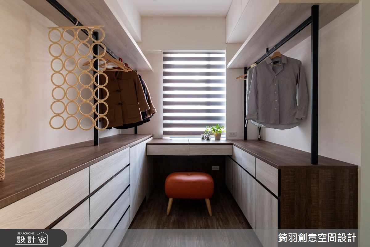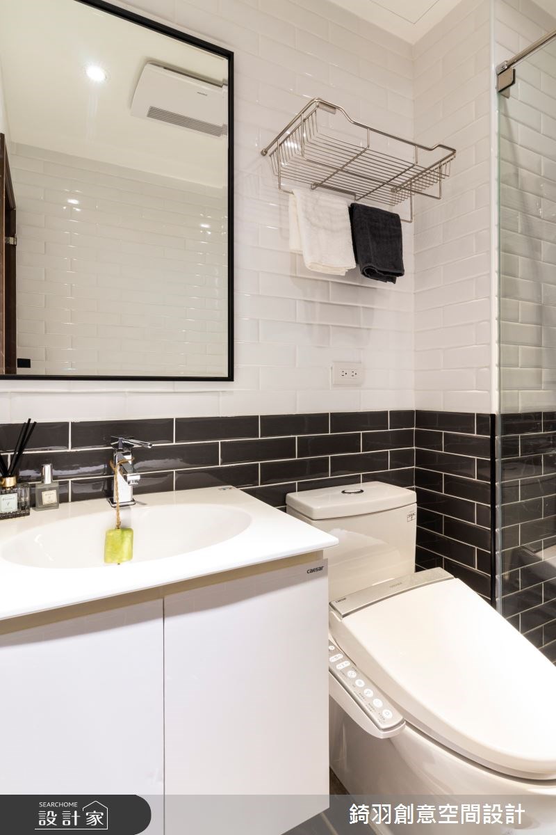 屋主期盼臥室皆採用訂製床架,方便直接放上床墊入住,因此每間寢臥都以架高床架來提升收納機能,且底下不會累積灰塵需清掃。主臥特別規劃灰玻拉門隔間的更衣室,開放式衣櫃滿足屋主的收納需求,而一旁衛浴則挑選黑白雙色的地鐵磚裝飾,呈現摩登潔淨的空間氣質。