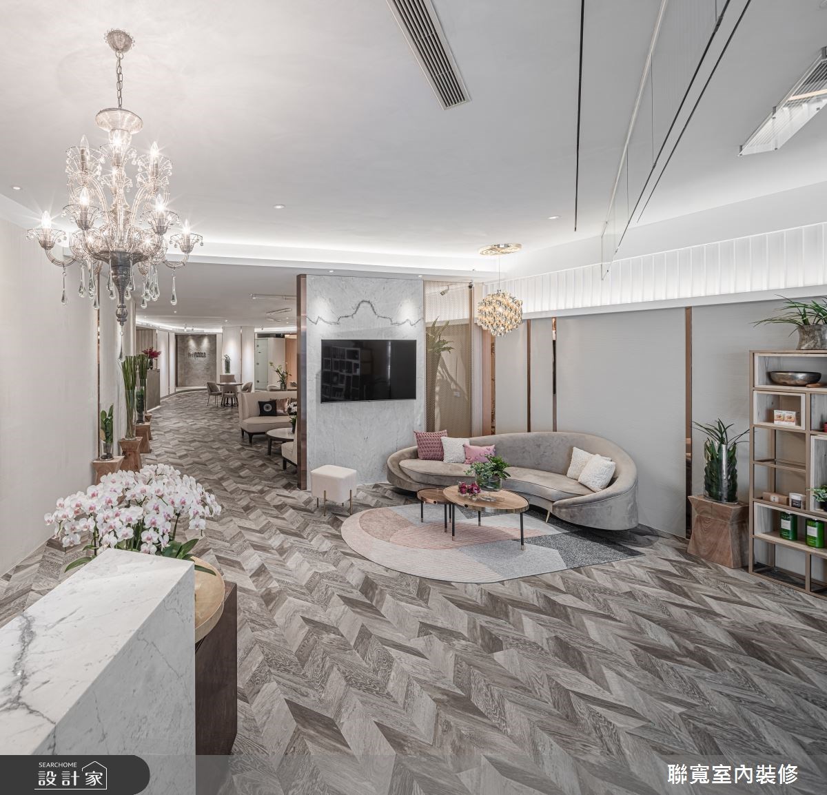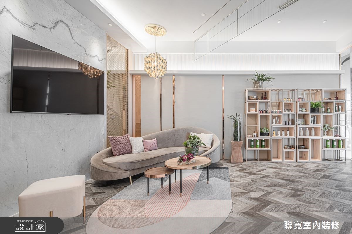 位於高雄大立精品百貨的SPA會館占地120坪,裝飾的靈感來自具有柔和曲線的女性,弧形空間壁面融合現代線條銅鏡與鍍鈦,搭配不同紋理質感的珪藻土,柔和的調色板和混合紋理元素,與純淨的建築線條相結合,在空間中形成了鮮明的對比,卻又不失視覺上的連續性。接待櫃檯以義大利金屬漆面展現低調奢華,粉嫩帶灰色的貴妃椅以弧型曲線突出優雅氣質,最重要的SPA室則運用簡單的線條、天花與壁面顏色變化,搭配溫潤木質調療癒我們的心靈。