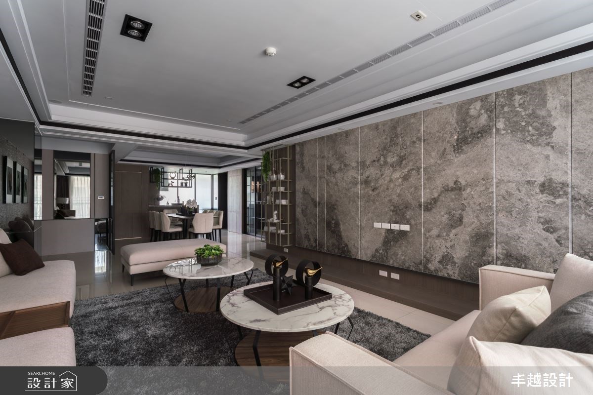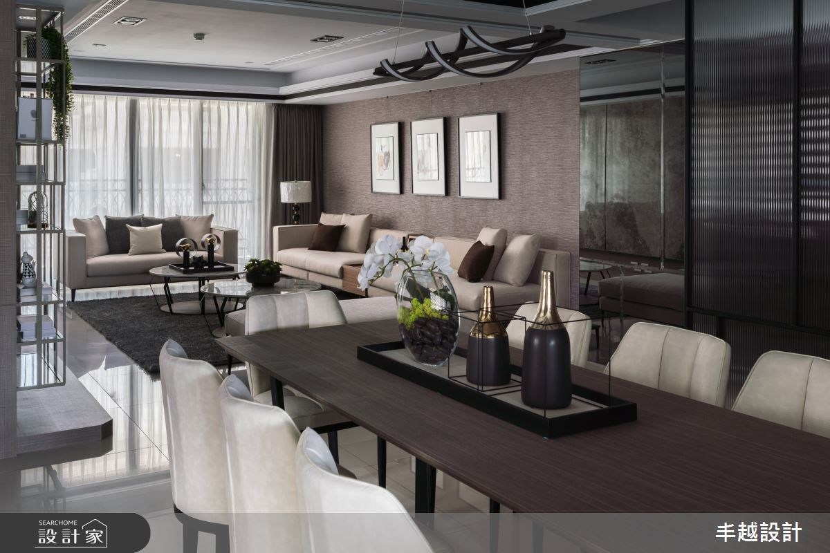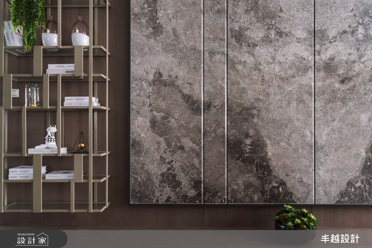 Home Data70 坪現代風居家,設計師以溫文儒雅的褐色作為空間主調,並以局部使用天然大理石展現低調奢華的居家氛圍,請跟著小編一起來看看吧!進入大門後,玄關落塵區利用鏡面燈光提供出門整理服裝儀容,也指引回家後的溫暖視線,走入公共區域,開放式的客餐廳設計賦予空間大器印象,設計師更特別調整部分格局,讓客廳主牆更為開闊,電視牆面則以石材呈現質感,側邊鏤空的金屬展示櫃,不僅具有收納機能更是視覺焦點。