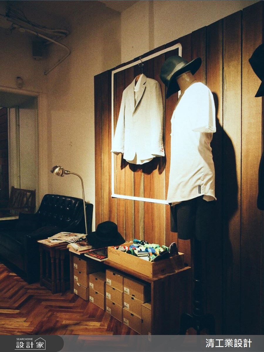 Home Data30 年老房子年久失修,同時伴隨著漏水、壁癌等常見的老屋問題。設計師先將原有的缺陷整新補強,再選擇粗獷的清水模牆面傳遞個性服飾品牌風格,透過木層板、木地板增添室內溫暖氛圍,呈現個性不失溫暖的混搭風。