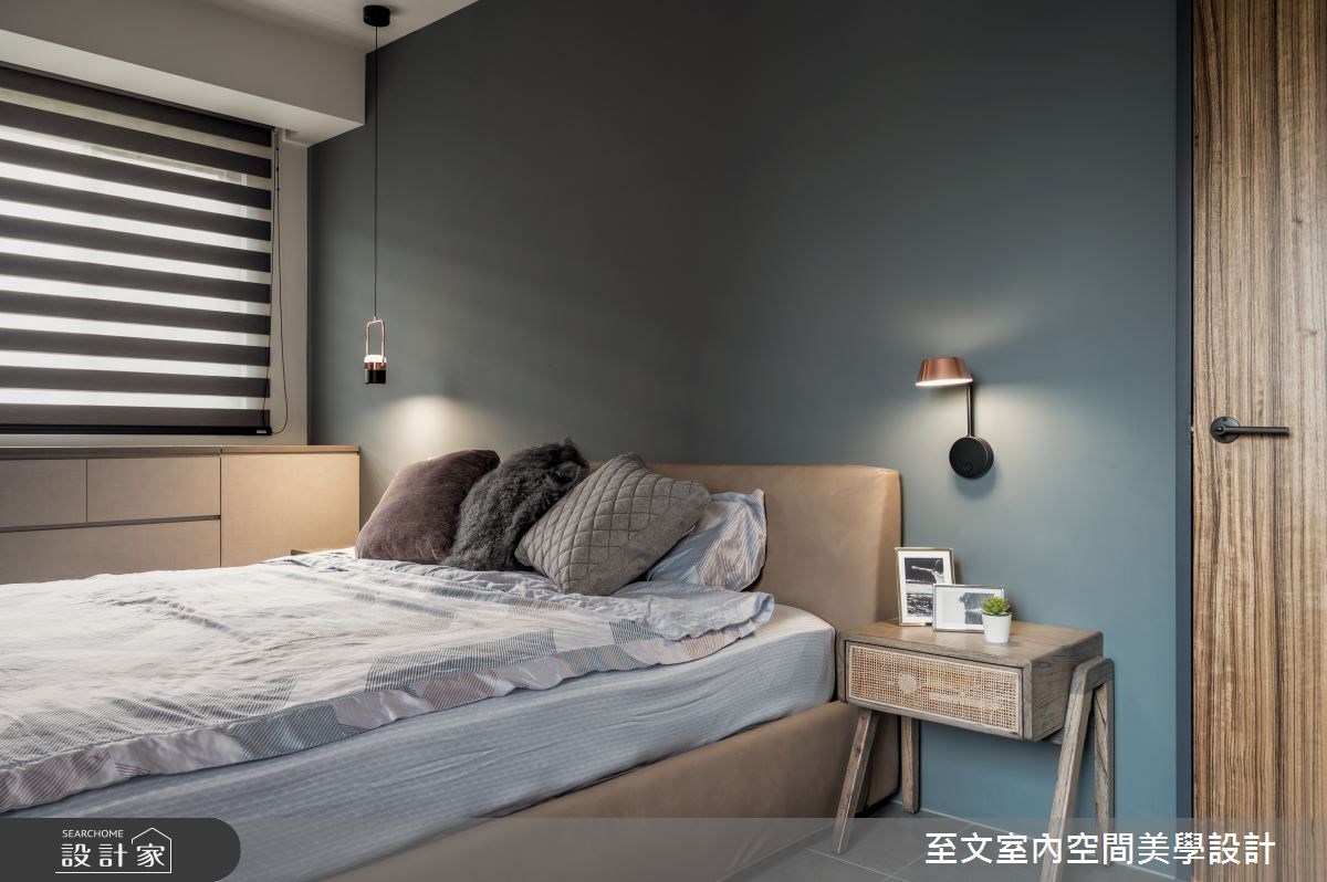 廚房透過鐵件玻璃折門劃分場域,方便下廚的女主人能夠隨時照看在客廳玩耍的孩子,並且通透的設計也能增強空間的開闊感。沿著走道牆面設置的收納櫃採取懸空形式,一方面減輕了視覺負擔,另一方面也能放置孩子玩具或是自然擺件,形成獨特的家居藝廊。主臥床頭貼心地在兩側安裝了吊燈和壁燈,讓夫妻倆保有自己的生活習慣,而矮櫃則選擇籐編材質裝飾,成功提升了視覺的變化度。
