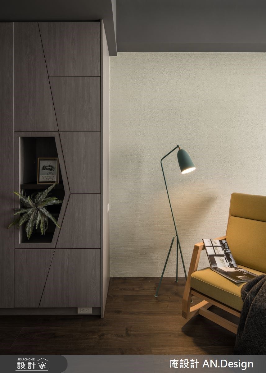 收納機能表現方面,刻意捨棄過於顯眼的櫃體鋪陳,選擇針對屋主夫妻的興趣或蒐藏,透過展示妝點等手法,將植栽、相片或擺飾等化為點綴,替居家添入生活的味道。運用大面積的材質蔓延,給予簡約質樸的素材如木皮、珪藻土、灰泥、仿清水模等手感肌理,替家挹注紓壓的生活情緒。