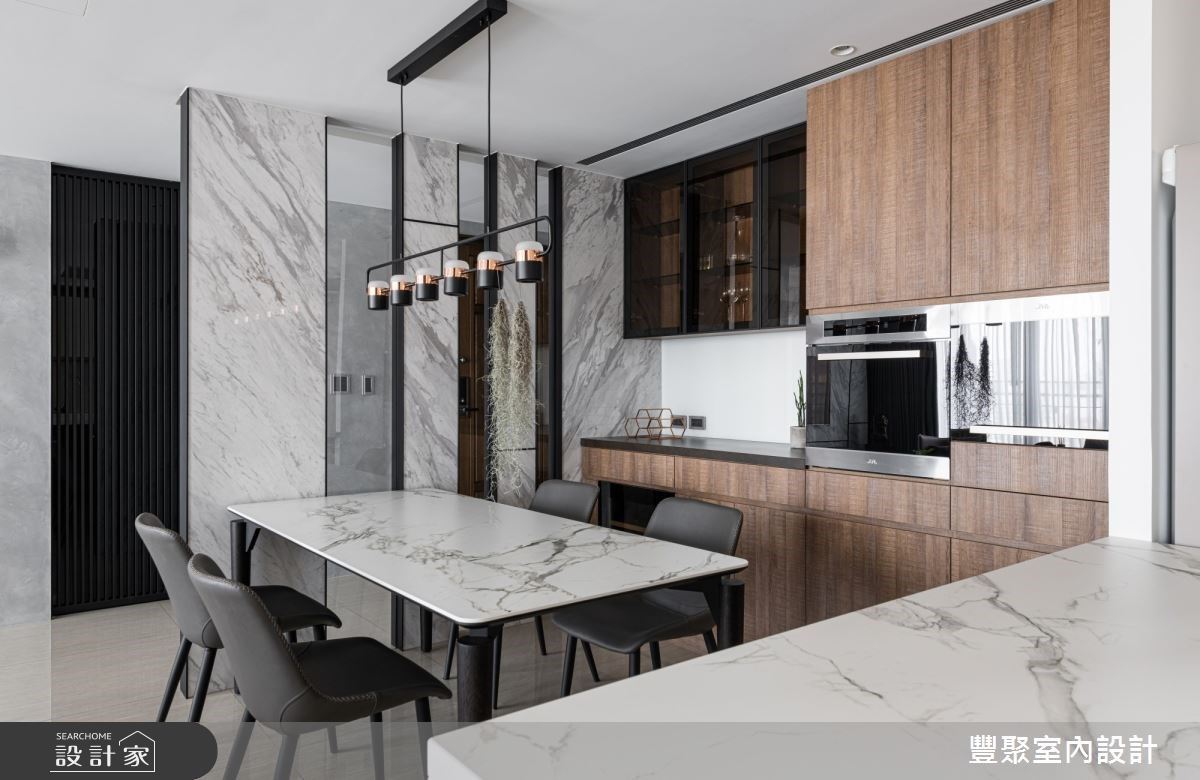 Home Data身為營造商的屋主,特別講究空間的材質與施工品質,而女屋主渴望家中有開放廚房與中島,除了簡單料理,也能盡情招待拜訪的親友們,因此透過開放的格局規劃,讓廚房、書房領域都打開來,展現出開闊的空間感;而流暢且安全的動線安排,也符合未來屋主夫妻倆期待的閒適熟齡生活。