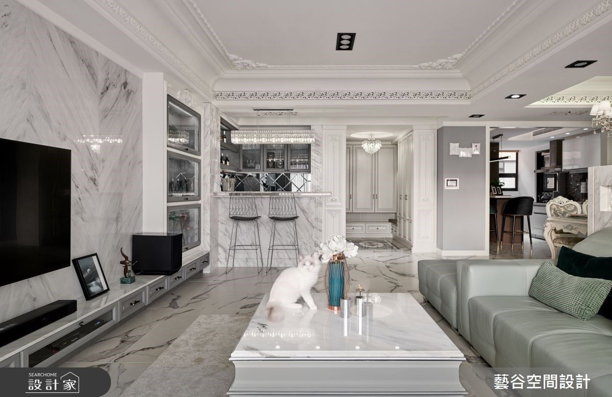 茫茫人海中的相遇即是一種緣分,一次偶然的相遇,使屋主找上張芷融設計師,成就了這次 48 坪的空間,運用魚肚白大理石、銀狐大理石、烤漆玻璃等材質,透過細膩的溝通及觀察,整合異材質與系統家具,為屋主一家人帶來實用、美感兼具的新古典宅邸。