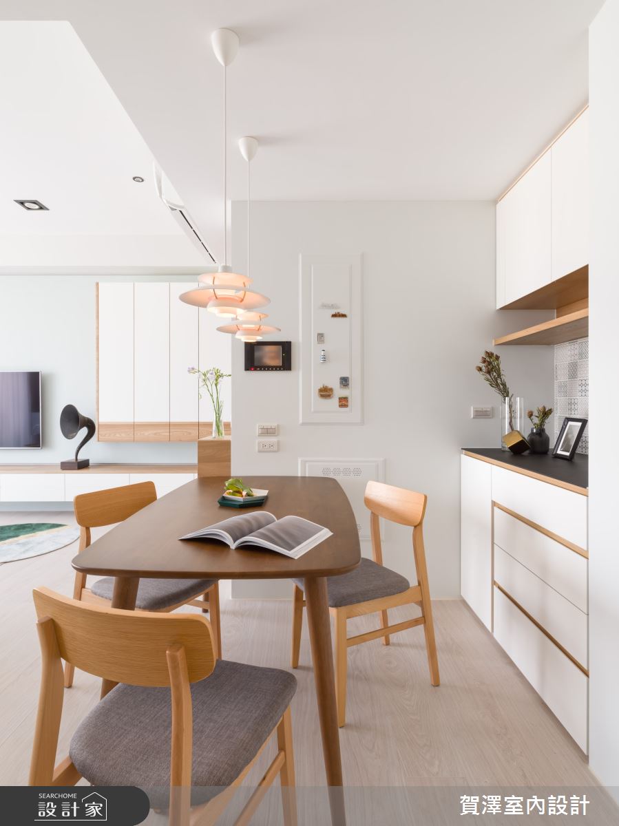 28.5 坪北歐風居家,設計師依循屋主平常喜歡拼圖與畫油畫的習慣,打造了一專屬區域平台、提供足夠的做畫空間,且貼近其閱讀及收藏習慣,規劃書架放置區,同時將原本的一字廚具改為L型,讓每個場域都符合生活所需,快跟著小編一起來看看吧!