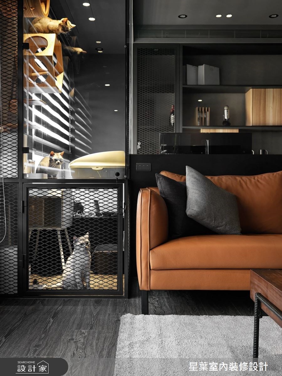 設計師特別在書房的一隅,利用玻璃材質分隔出三隻貓咪的貓跳台空間,讓屋主在辦公時,毛小孩們可以陪伴在旁,使心情頓時間沉穩下來,喘口氣繼續工作。