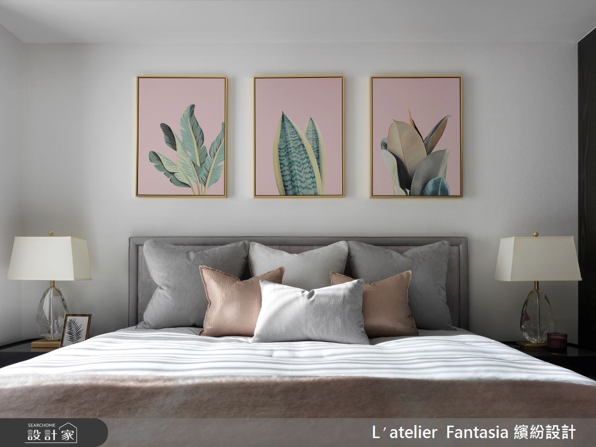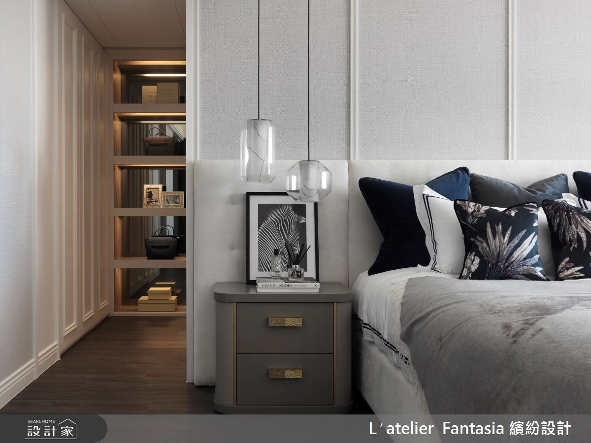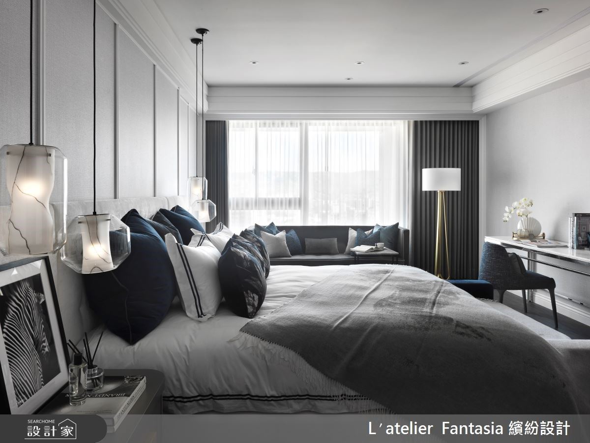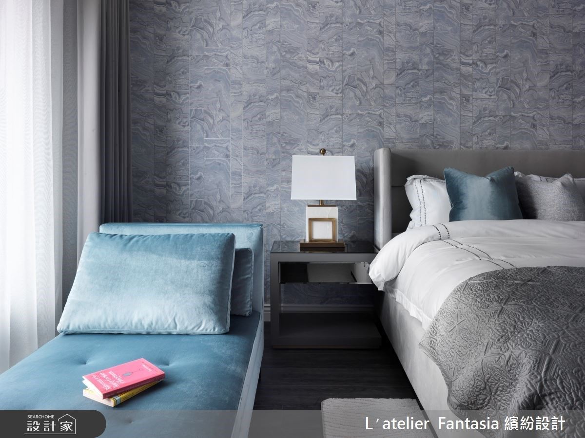 三間臥室順應居住者的喜好,各有其風格特色,主臥室融入皇家藍畫龍點睛,設有兩個部分的更衣空間,方便男女主人使用;次臥室其一以灰藍色和髒粉色調和,展現略為甜美卻不失時尚態度的設計美學;其二,選擇汝瓷青色作為軟裝,牆面選擇雲母石紋路的磚貼附,整體視覺感官的溫潤、舒適。