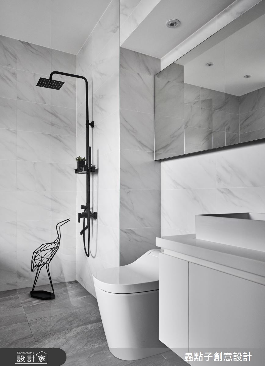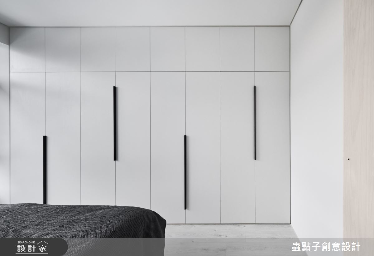 臥房內,以白色的櫃面為底,加上黑色線性與把手置入,形塑出美感與機能的總和,藉由俐落線條與溝縫的細緻處理,讓立面成為簡約又蘊含層次的設計符碼!
