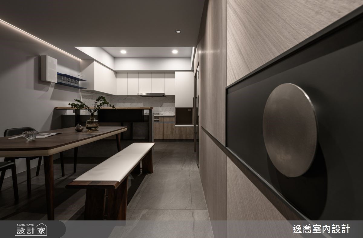 「每個空間線條存在不僅是美觀裝飾,還需要有實用性,才能帶出空間質感。」從書房、客廳的半腰牆,與不規則穿透鐵櫃設計,都巧妙延展空間視野,更營造出現代空間的簡潔俐落感。開放式餐廚區也在蔣孝琪的配置連結中,更具連貫性。而提到燈光規劃,蔣孝琪說:「我喜歡運用不同光氛來營造多樣化的生活情境。」因為對她而言,居家的重心在於生活,她希望設計能讓懂得品味的屋主夫妻享有更為豐富的生活情調。