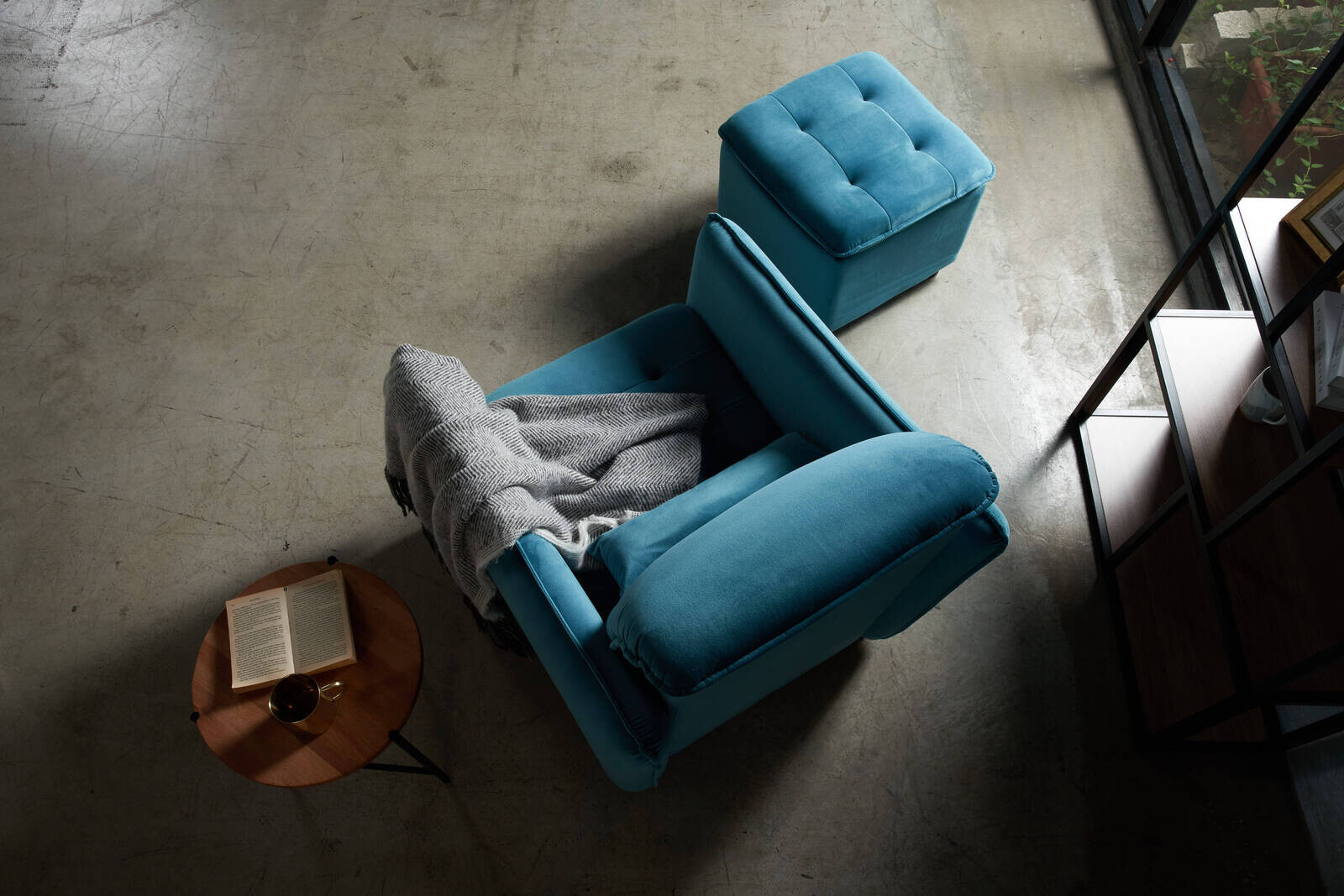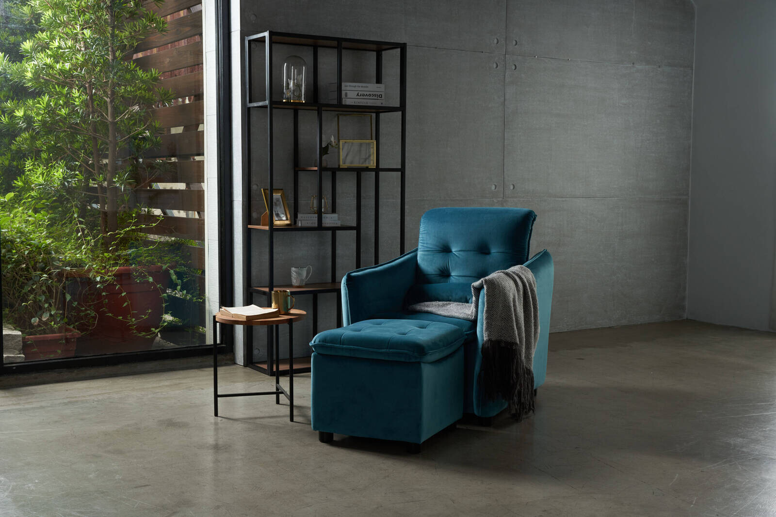 下面的照片中使用深藍色的單人沙發