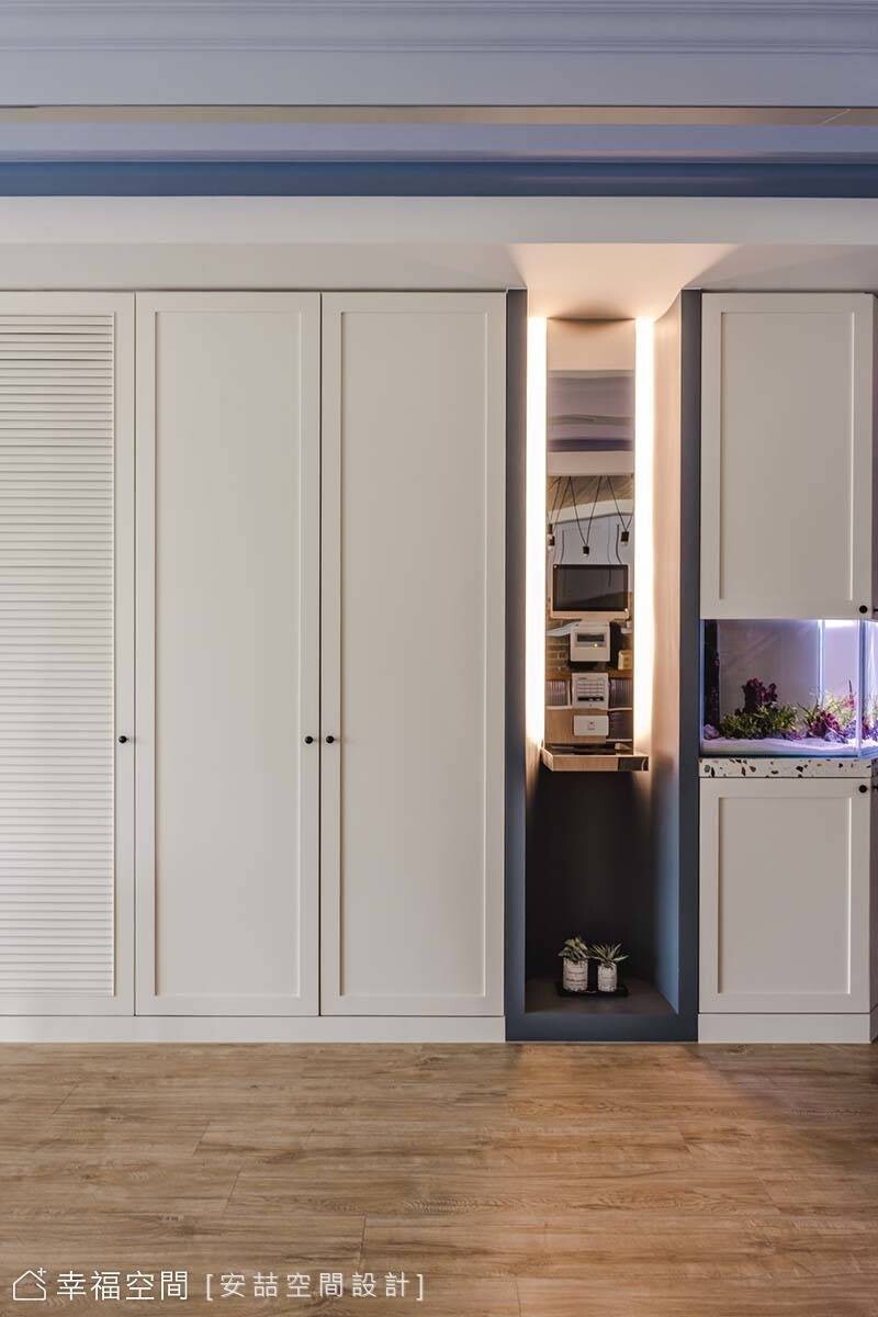主臥房以清爽的藍白配色圍塑安定心神的舒眠氛圍。床尾以斜切木框搭配光條,完美虛化大衣櫃的量體感,塑造俐落有形的率性框景。兩間女孩房都以輕柔的粉紅色塗刷,其中一間還精心打造粉紅夢幻城堡,實現女孩們的公主夢,更成了三姊妹排隊搶住的熱點。安喆空間設計將屋主喜愛的美式鄉村風、禪風、現代風等風格元素,適度呈現在各場域中,把家變成主人最喜歡的樣子,讓每個時刻都充滿幸福感,日子簡單而美好。