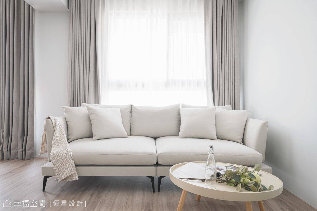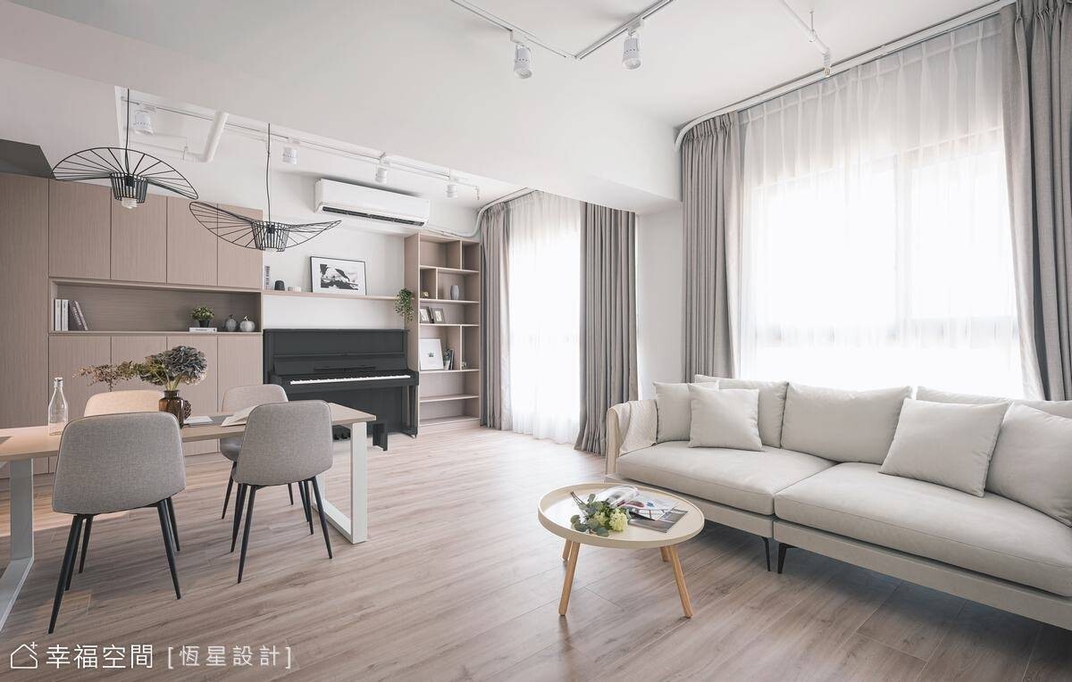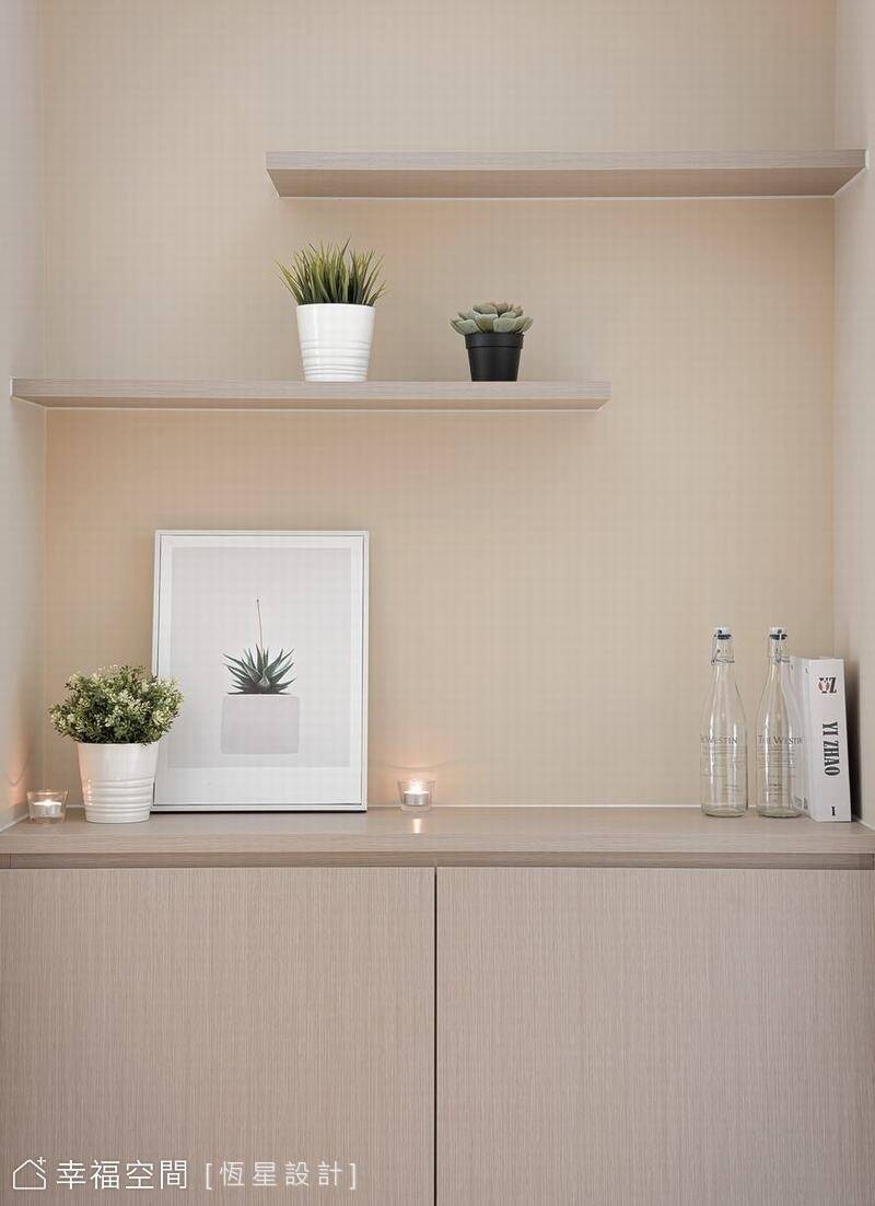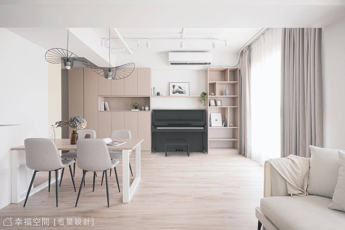 透過設計,鄧湘盈設計師將生活品味的執著體現在居家生活中,讓生活美學變成一個自然而然的事!藍綠色的清新知性,交織米色的典雅平和與親切感,融合出空間饒富生氣與溫度。在恆星設計師悉心搭配下,以牆面分割跳色,讓立面呈現出活潑跳躍的特色美感。