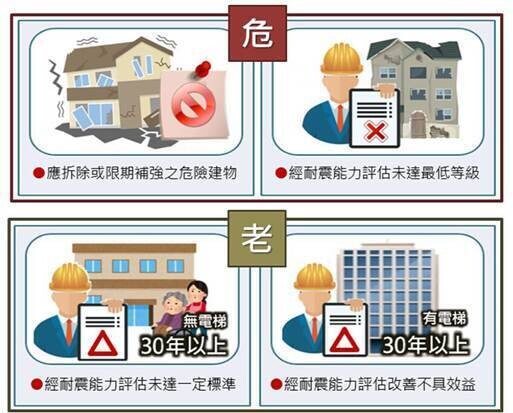 申辦資格都符合後,還分成:(一)「危險房屋」判定及(二)「老屋」判定: