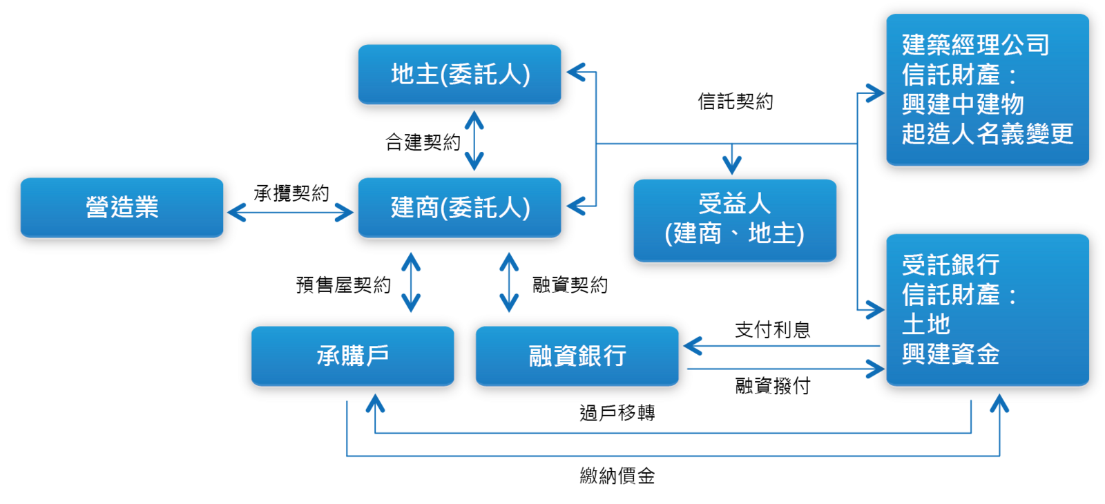 「不動產開發信託」又可細分為三種方式,分別是「信託業者同時擔任建物受託人及起造人」、「建經公司擔任建物受託人及起造人」、「建商擔任起人」,其中又以前兩項對消費者的保障程度較高。