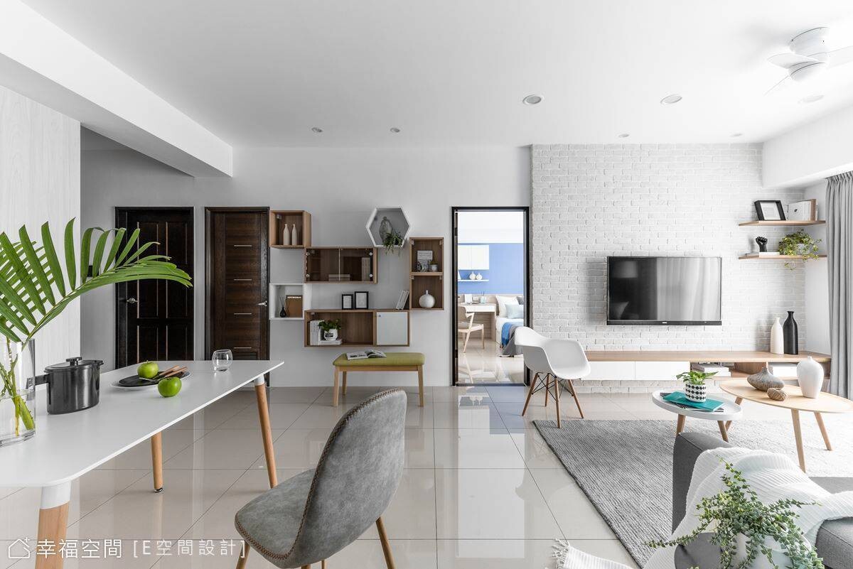 本案位於市中心的新成屋,格局方正,設計師屈富貞針對家庭成員居住需求,運用細膩設計手法,透過規劃動線流暢,客廳、餐廳、書房半開放穿透的公共場域,搭配固定玻璃隔屏讓空間更具穿透寬敞,加上文化石電視牆面,展現出質樸而溫暖的簡約人文氣息,讓男女屋主每天回到家,就能徹底放鬆身心。