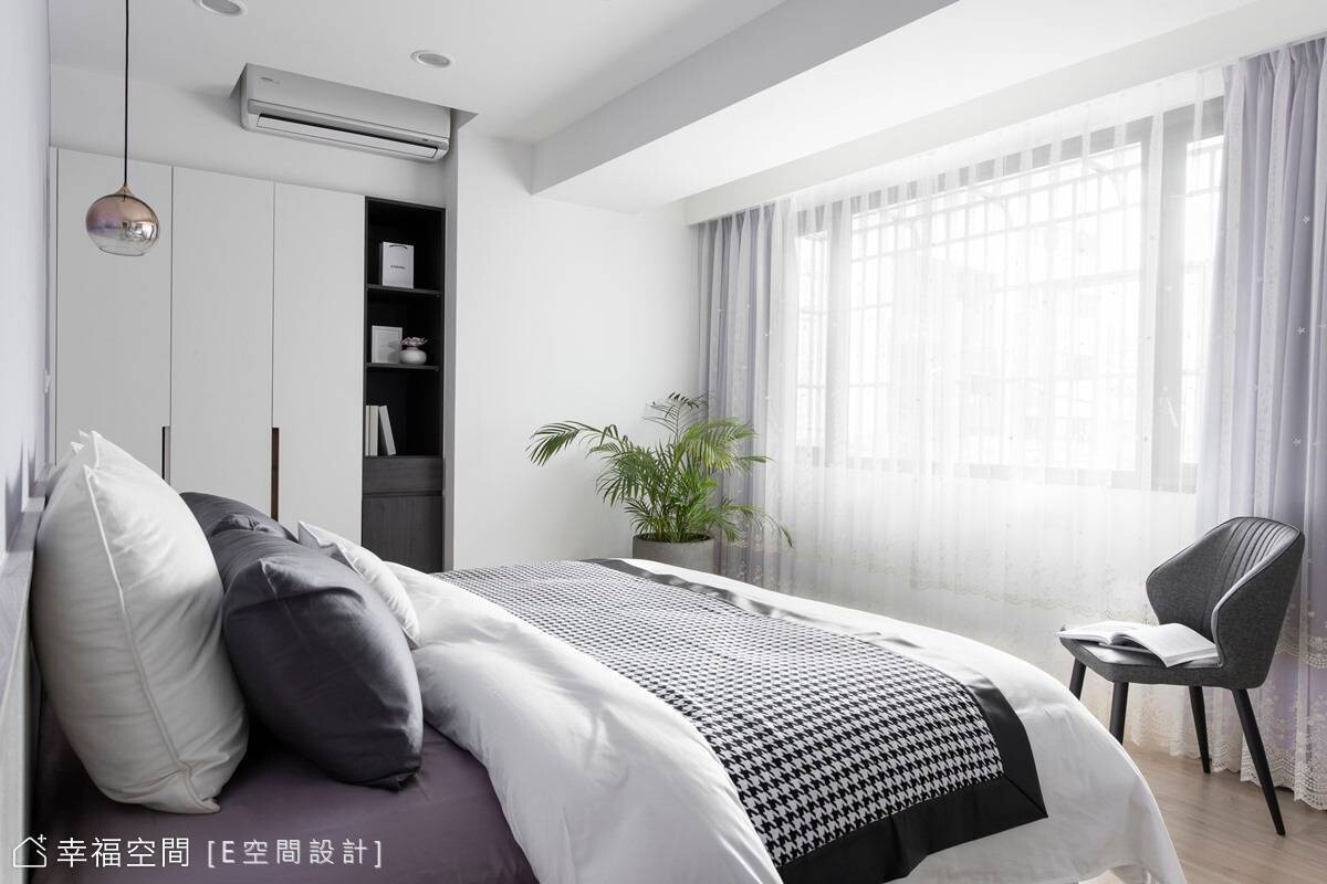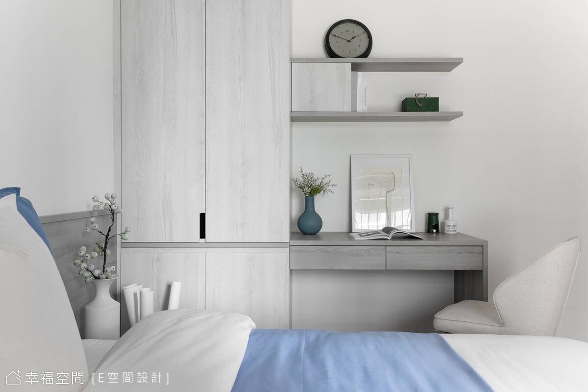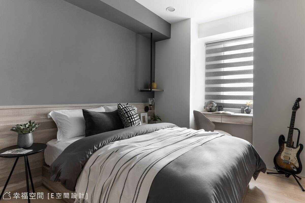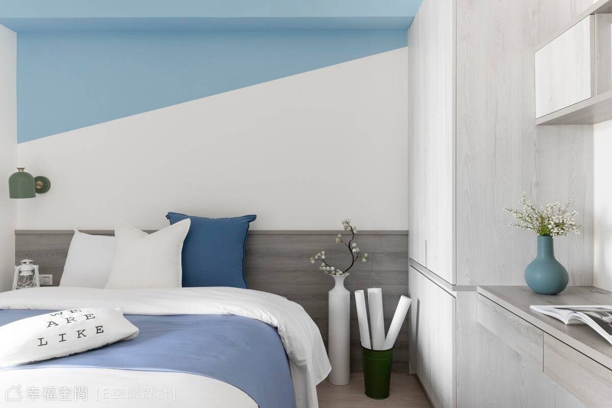 寬敞的主臥房擁有大面窗戶,引入溫煦日光搭配藕紫色調牆面,圍塑柔和睡眠氛圍,另兩間男孩房則依據個性、喜好,一間選擇灰色牆面搭木質櫃體,另一間以藍色為主軸,呈現各具特色的寢室風情,共築和諧融洽家庭,譜畫出簡單又暖心的生活環境。