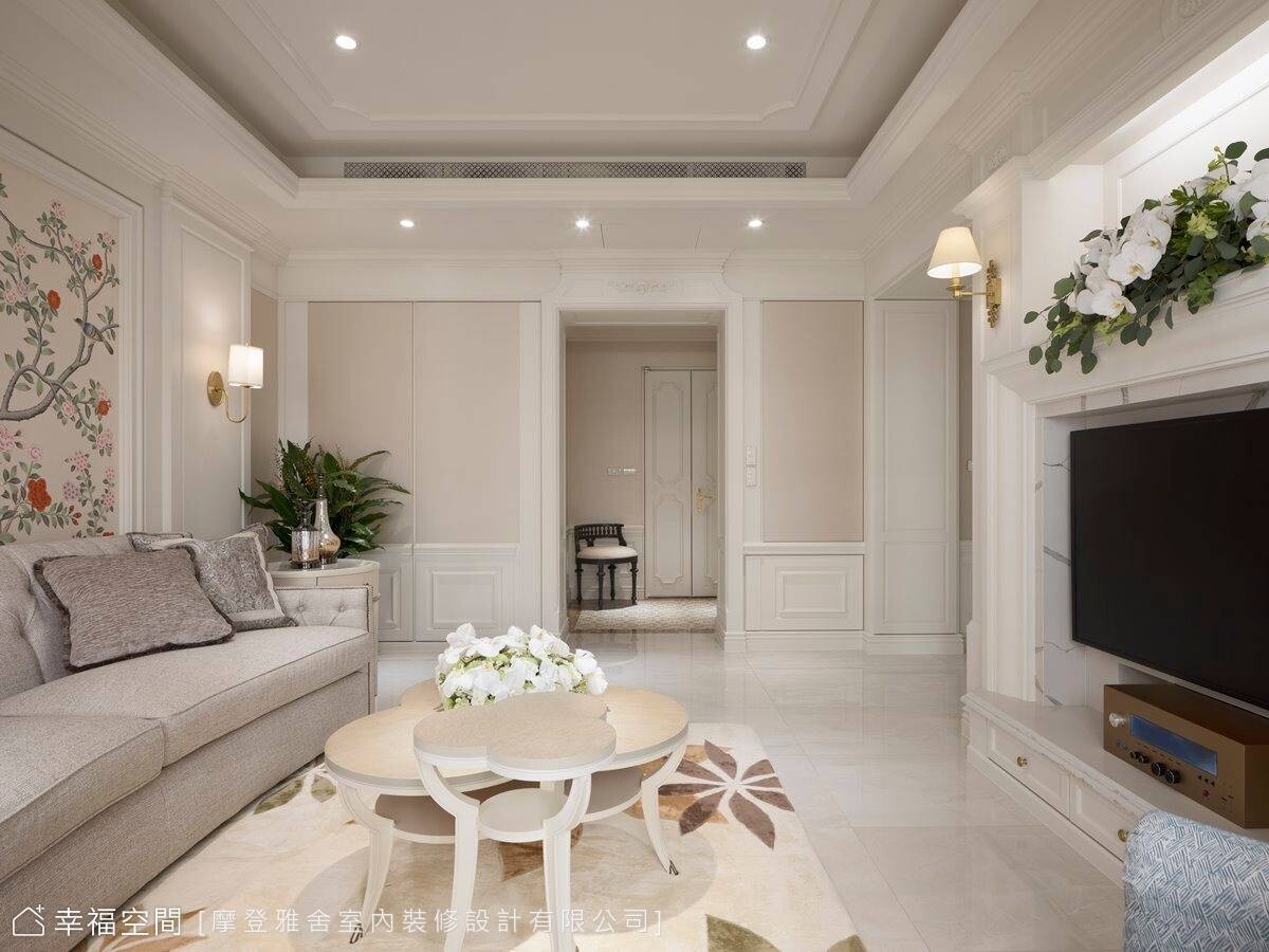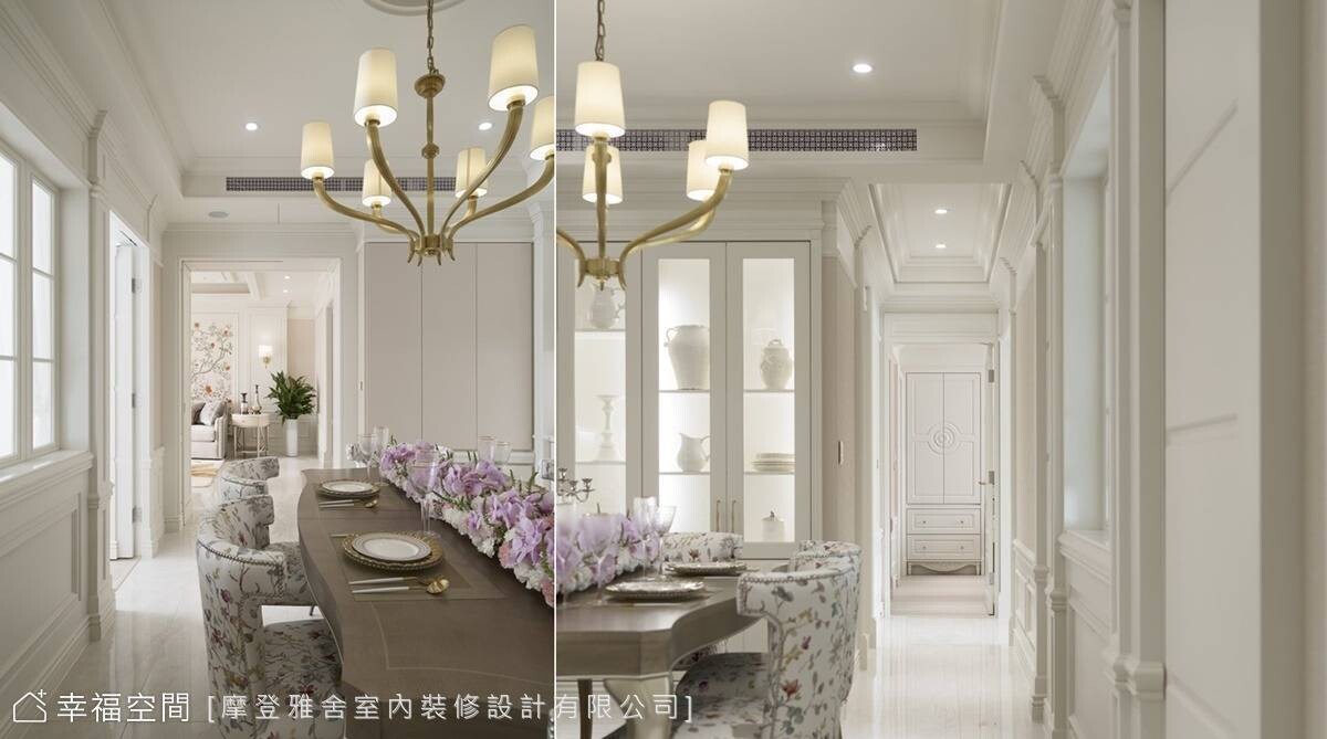 溫潤色彩如鬆軟綿花,緩緩吸除居者疲憊,賦予輕盈心境,而輕淺線條亦淡淡勾勒出美式生活輪廓,帶來慢活優雅的異國情調,華而不奢的飯店式空間,出自摩登雅舍室內裝修設計之手。已屆退休年齡的夫妻倆,想改造已居住20多年的家,遂聯繫多個長期關注的設計師,進一步得知王思文與汪忠錠設計師,從設計、施作到驗收都親力親為,不假手他人,品質也都有歷任屋主的背書和見證,於是決定將裝修任務交予他們。