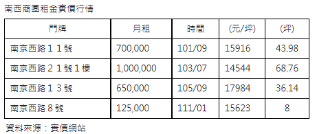 南西小店租金每坪1.56萬 近1年半以來北市實價新高