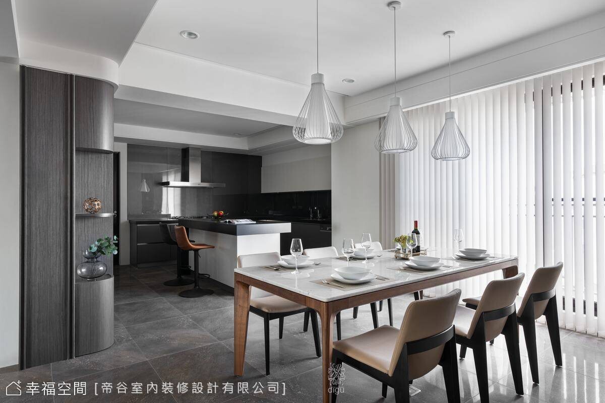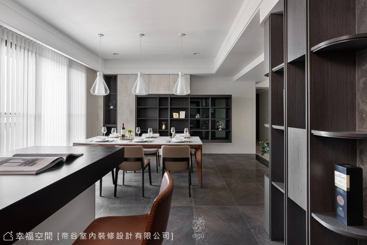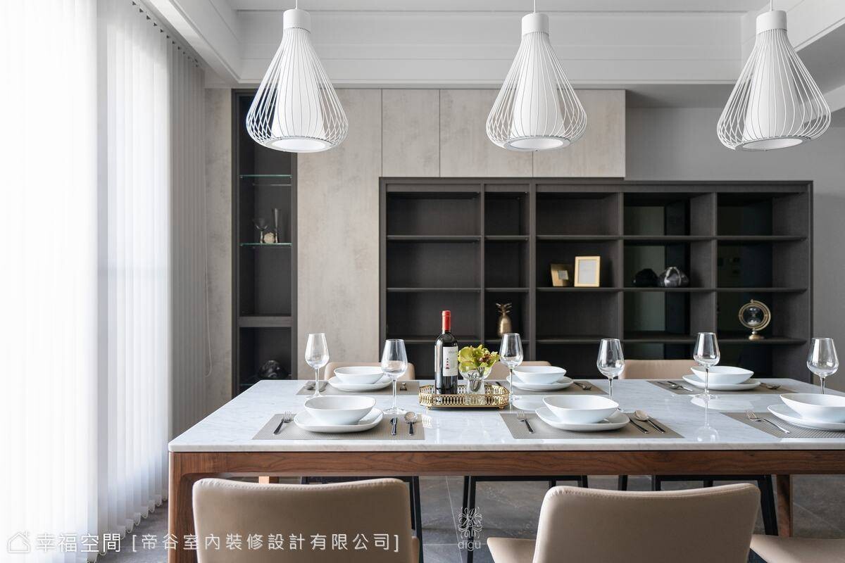 餐廳開放式櫃體幾何元素,展現出新意的設計,易於清潔、美觀又耐用也成為空間的一抹亮點,餐桌優美的造型燈具,家具擺設,讓平凡的生活當中看見充滿細心的細節。臥房空間設計師以簡約線條與大色塊的設計和適時的留白特點,讓空間簡潔開闊。簡單的設計不僅可以讓您的家更加美麗還能提升整體氛圍,讓生活充滿意義!