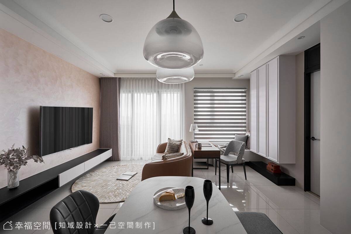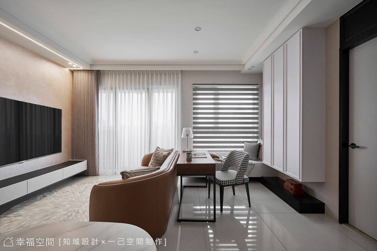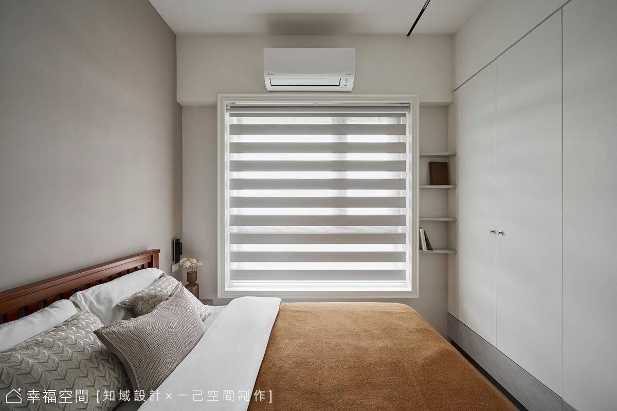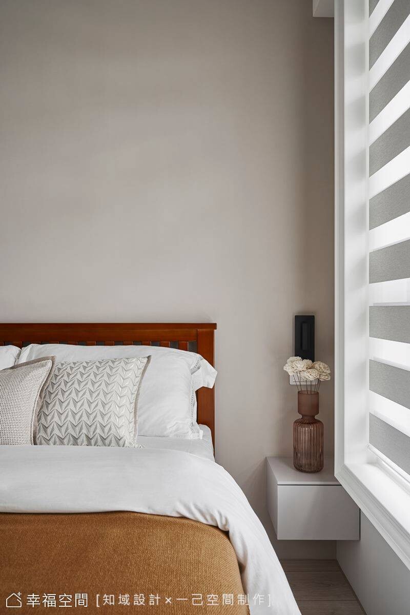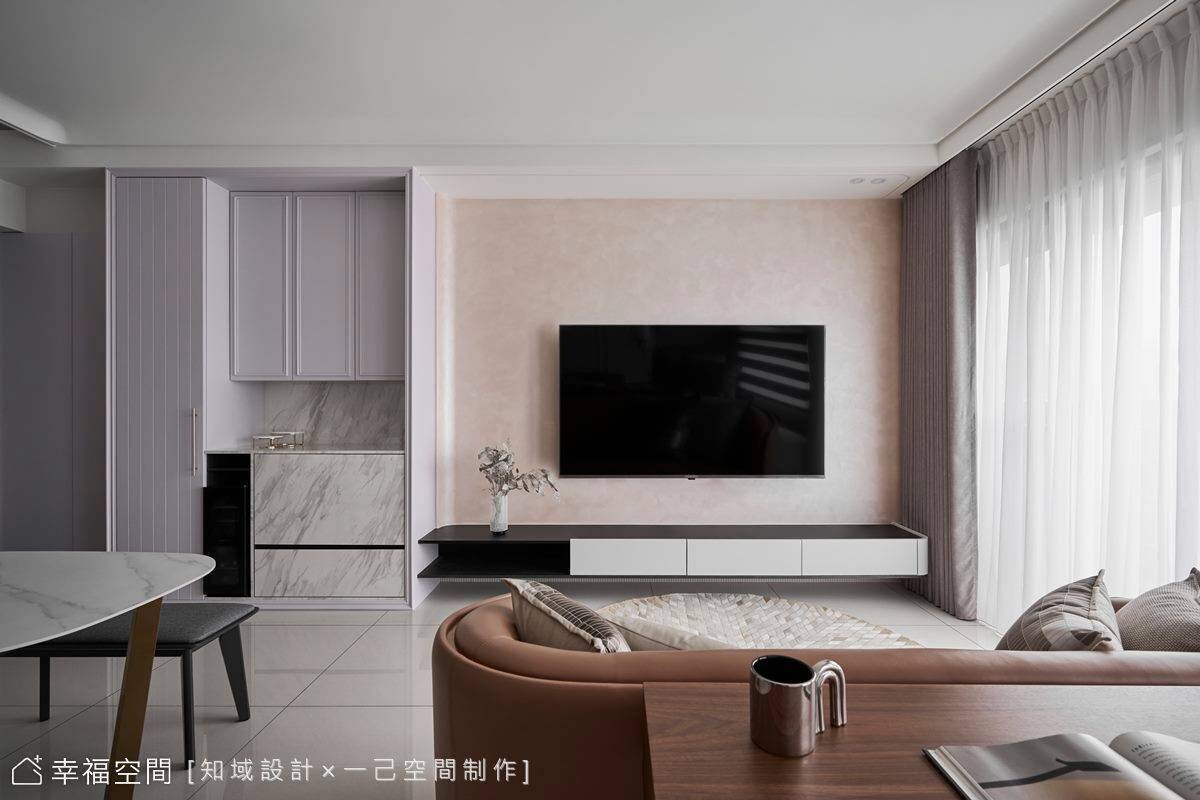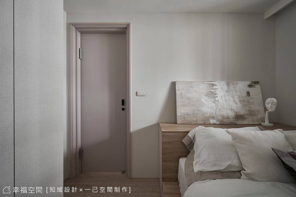 整體不算一個複雜的案件,我們用了很輕巧的手法將主臥內浴室擴大和調整主臥室的動線格局,置入的方形單人大浴缸, 讓下班後疲勞的身心有了休憩的佇所。配色上我們以裸色搭配藕色,兩種都是近年最能代表都會女性,獨立幹練中帶有一絲溫柔的色彩。當陽光透過紗簾及調光簾的線條進到屋內,自然揉合出最舒適的居家空間。
