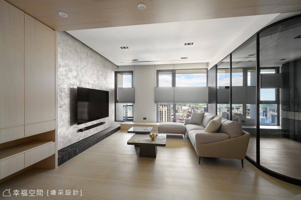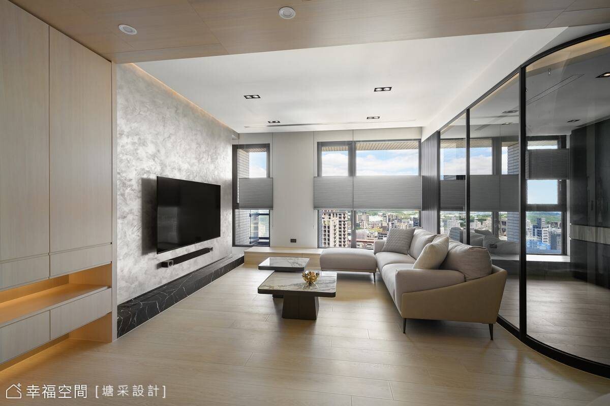 設計之初,保留空間通透挑高、採光充足的先天優勢,並針對動線曲折、格局配置不理想的地方精益求精,如擴展客廳及主臥的尺度,將其中一間臥房改成多功能客房,由此創造更加貼合生活狀態的空間雛形。最後,再將屋主的嚮往內化成場景嵌入日常,建立視覺與心理的美學共鳴,這即是塘采設計賦能美好生活的價值展現。