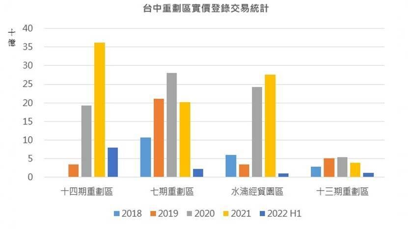 信義全球資產公司顧問發展部經理林建勛表示,從近五年實價登錄統計台中各重劃區土地交易情形,就可以看出市場對14期的青睞。觀察14期土地交易走勢,2020年起呈現爆發性成長,2021年來到高峰,總交易金額達361億,至2022年上半年土地交易呈現放緩趨勢,總計近2年交易金額仍達到441億,超越台中其他重劃區的交易規模。