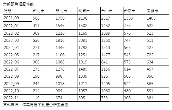 統計顯示,去年9~12月單月預售揭露件數可達1.2萬件,近7