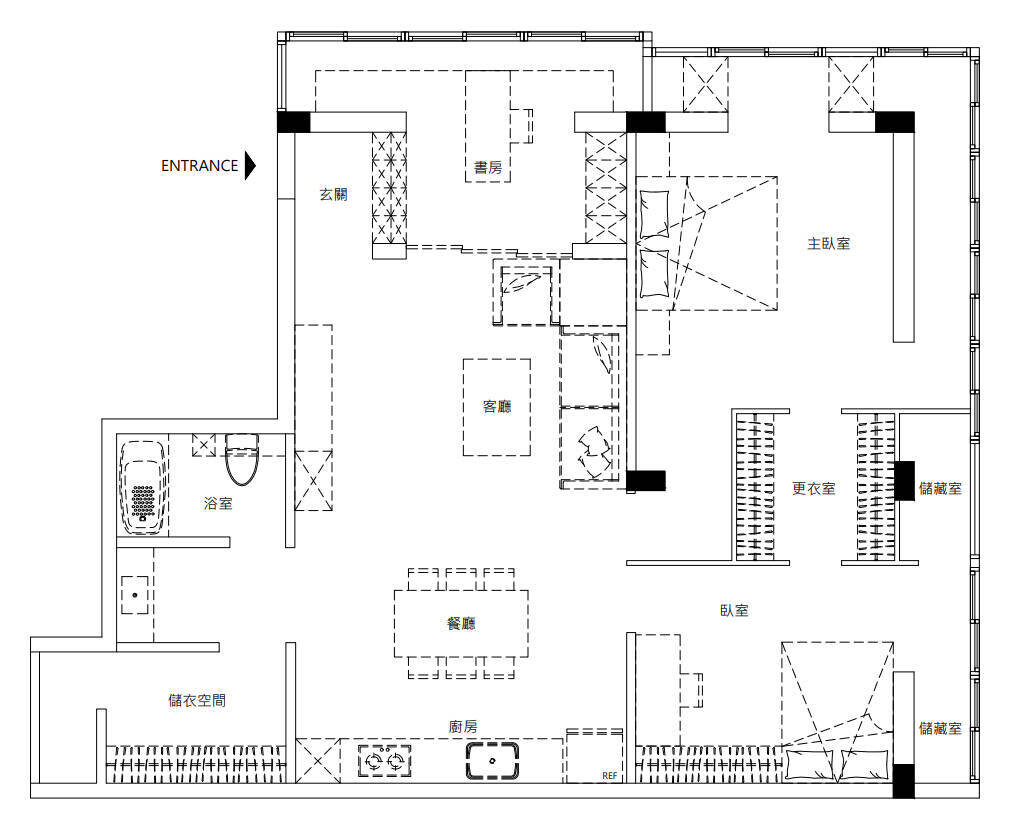 葉佳奇總監將書房改為臥室,動線上也把入口處移到玄關進門後左手邊盡頭處,原先一部分的書房被切開,讓玄關與臥房都能擁有很好的採光,而臥房內部的寬度,剛好能容納一張雙人床,必備的書桌與衣櫃皆齊全。